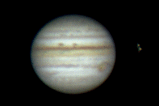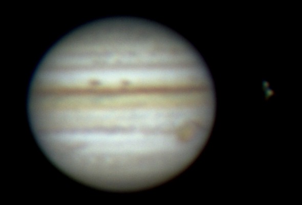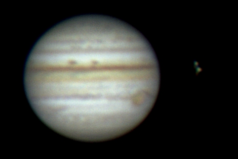 schwach der Mond Io erkennbar. Das