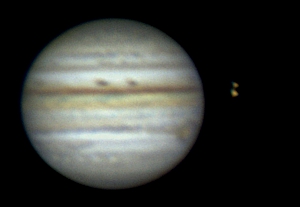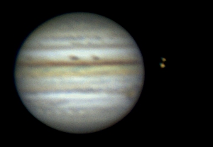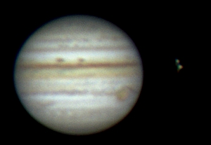 Bereits mit einem Fernglas kann man die 4 großen Jupitermonde erkennen. Der Jupitermond Io bewegt sich in weniger als zwei Tagen einmal um den Planeten. Beobachtet man die Monde im Abstand von ein bis zwei Stunden, kann man schon die Veränderung ihrer Position sehen. Häufig bewegen sich die Monde auch direkt vor dem Jupiter vorbei. Durch ein Fernrohr sieht man dann die Schatten der Monde auf dem Jupiter.