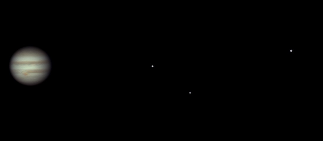 An diesem Tag nahm ich Jupiter mit höherer Vergrößerung auf. Leider war das Seeing dann doch nicht so optimal, sodass ich die Bilder wieder verkleinert habe. Rechts befinden sich die Monde Europa (oben) und Io.