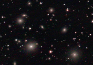 Der Abell catalog of rich clusters of galaxies enthält über 4000 Galaxienhaufen. Er geht zurück auf George Ogden Abell. Die Galaxienhaufen in diesem Katalog müssen bestimmten Kriterien, die Helligkeit, räumliche Entfernung und Anzahl der Haufenmitglieder betreffen, entsprechen. Ganze Galaxienhaufen dieses Katalogs zu beobachten ist nicht ganz einfach. Leichter zu beobachtende, größere Galaxienhaufen entsprechen meist nicht den Kriterien des Abell-Katalogs. So sind es eher lichtschwache Galaxienhaufen, die dem Astronomie-Amateur oft nicht so leicht zugänglich sind, da die Haufenmitglieder klein und lichtschwach erscheinen. Meine Ausbeute an Galaxienhaufen ist deshalb bisher recht gering. |