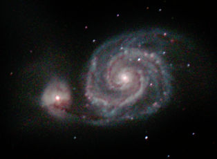 am 13.2.2015, 150 Aufnahmen je 50s durch das 254/1000 N auf Canon EOS 1100Da bei 800 ASA, addiert mit Fitswork Sternbild Jagdhunde 18,6' x 7,2' 8,3m 24 Millionen ly Spiralgalaxie |