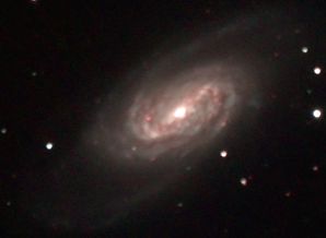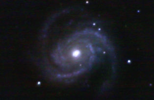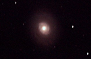 am 27.10.2014, 80 Aufnahmen mit Canon EOS 1100Da je 145s bei 800 ASA belichtet im Primärfokus des 250/1016 SN Sternbild Perseus 0,7'x0,6' ca. 240 Millionen ly Spiralgalaxie, Teil des Galaxienhaufens Abell 426 |