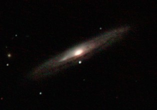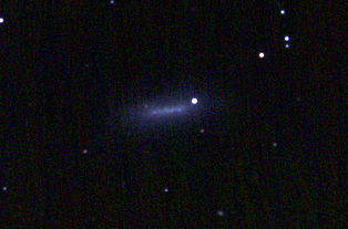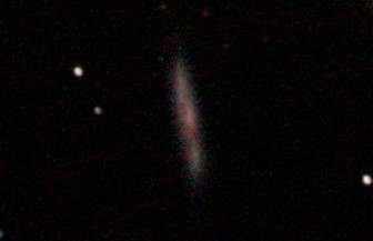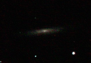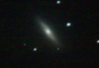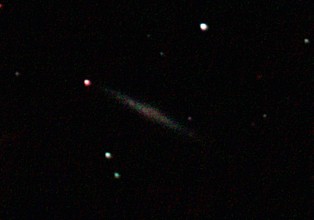am 27.10.2014, 80 Aufnahmen mit Canon EOS 1100Da je 145s bei 800 ASA belichtet im Primärfokus des 250/1016 SN Sternbild Perseus 0,8'x0,3' 14,1m ca. 220 Millionen ly elliptische Galaxie, Teil des Galaxienhaufens Abell 426 |