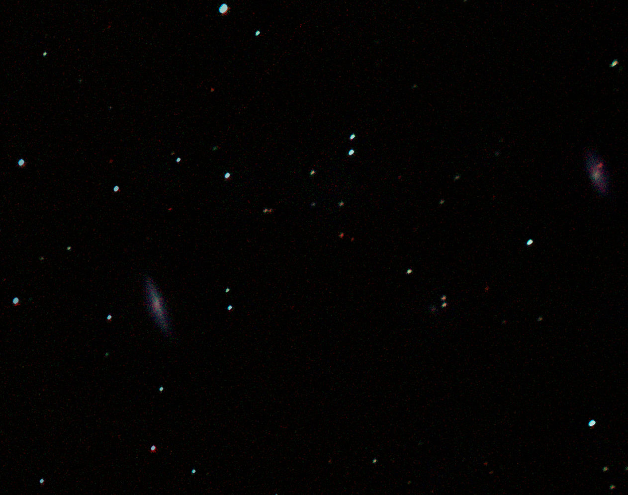 am 3.8.2012, 75 Aufnahmen mit Canon EOS 1100Da je 30s bei 6400 ASA belichtet im Primärfokus des 250/1016 SN Sternbild Fische 1,2'x0,8' 13m 170 Millionen ly Balkenspiralgalaxie, Teil der NGC-507-Gruppe (Galaxienhaufen)