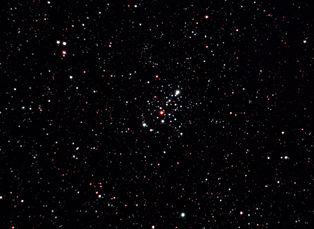 am 30.10.2013, 156 Aufnahmen mit je 25s durch das 250/1016 SN im Primärfokus auf Canon EOS 1100Da bei 6400 ASA, CLS Filter, addiert mit Fitswork Sternbild Kassiopeia 6' 7,4m 8500 ly Offener Sternhaufen |