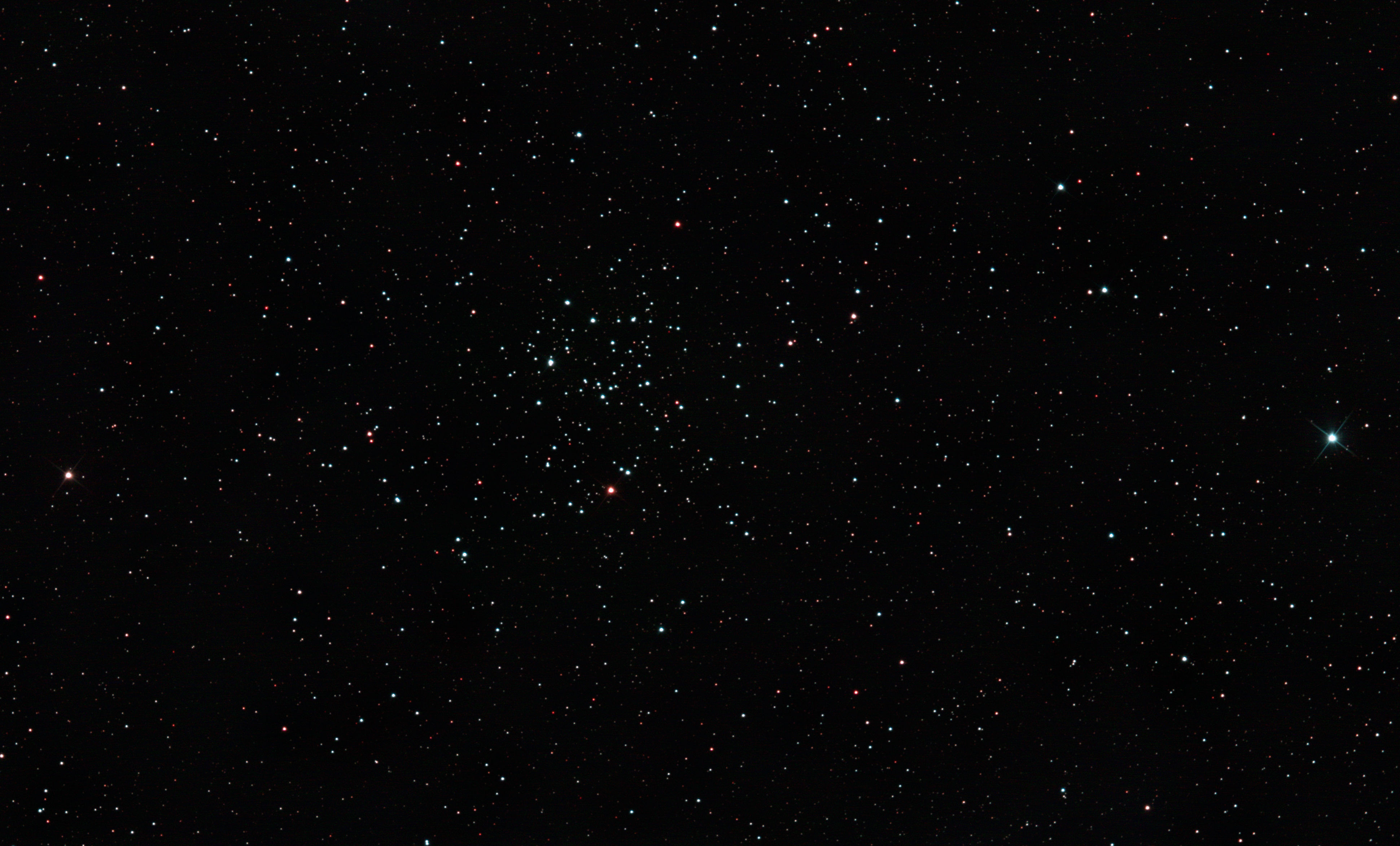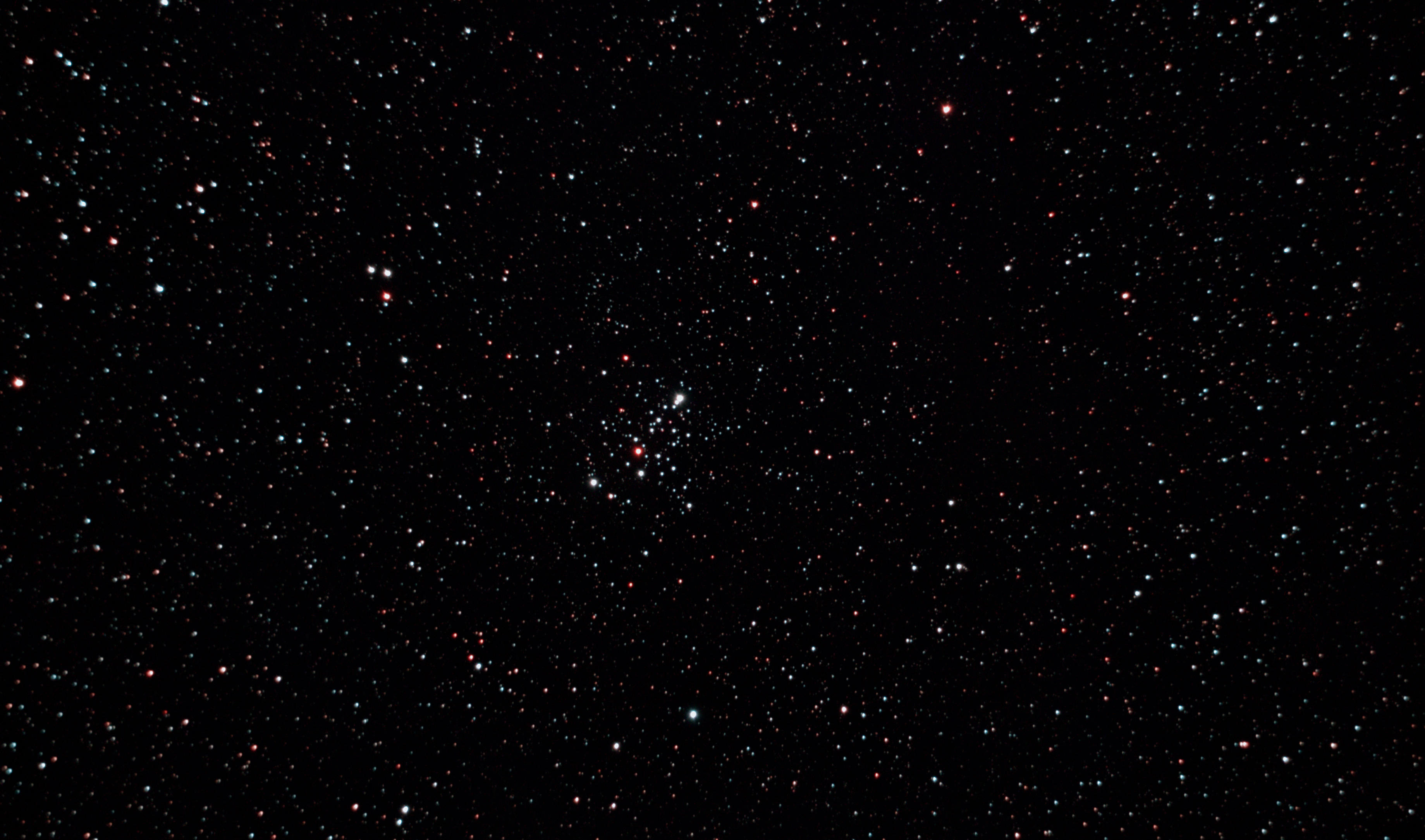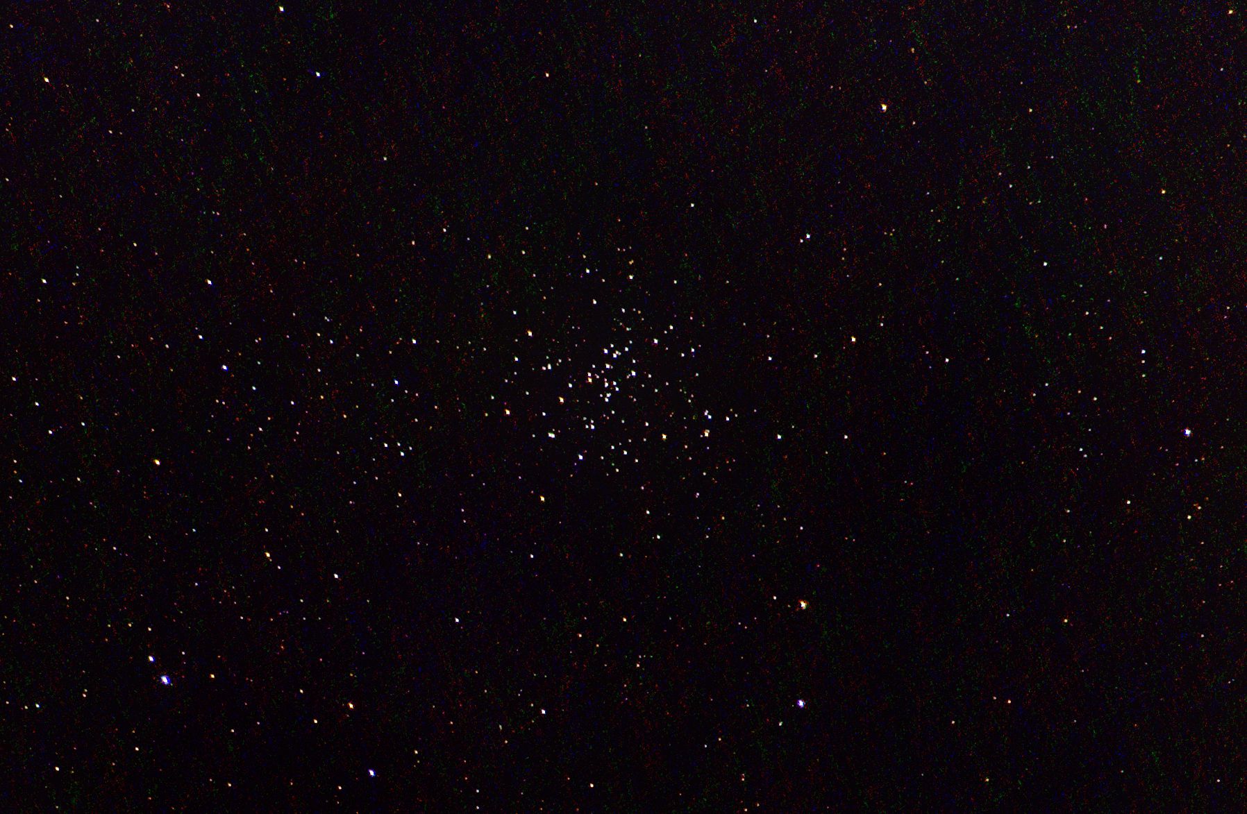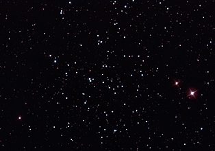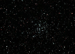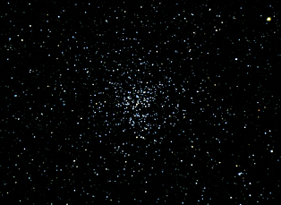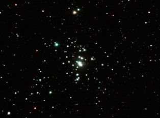 am 23.8.2015 durch 250/1016mm N-Reflektor, Canon EOS 1100Da mit CLS-Filter, 20 Bilder bei 800 ASA je 145s Sternbild Andromeda 75' 5,7m 1300 ly offener Sternhaufen |