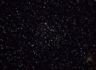 am 22.8.2015, 30 Aufnahmen mit Canon EOS 1100Da je 145s bei 800 ASA belichtet im Primärfokus des 250/1016 SN Sternbild Perseus 4' 6,6m 4000 ly offener Sternhaufen |