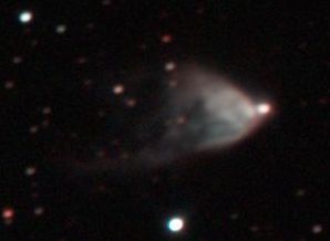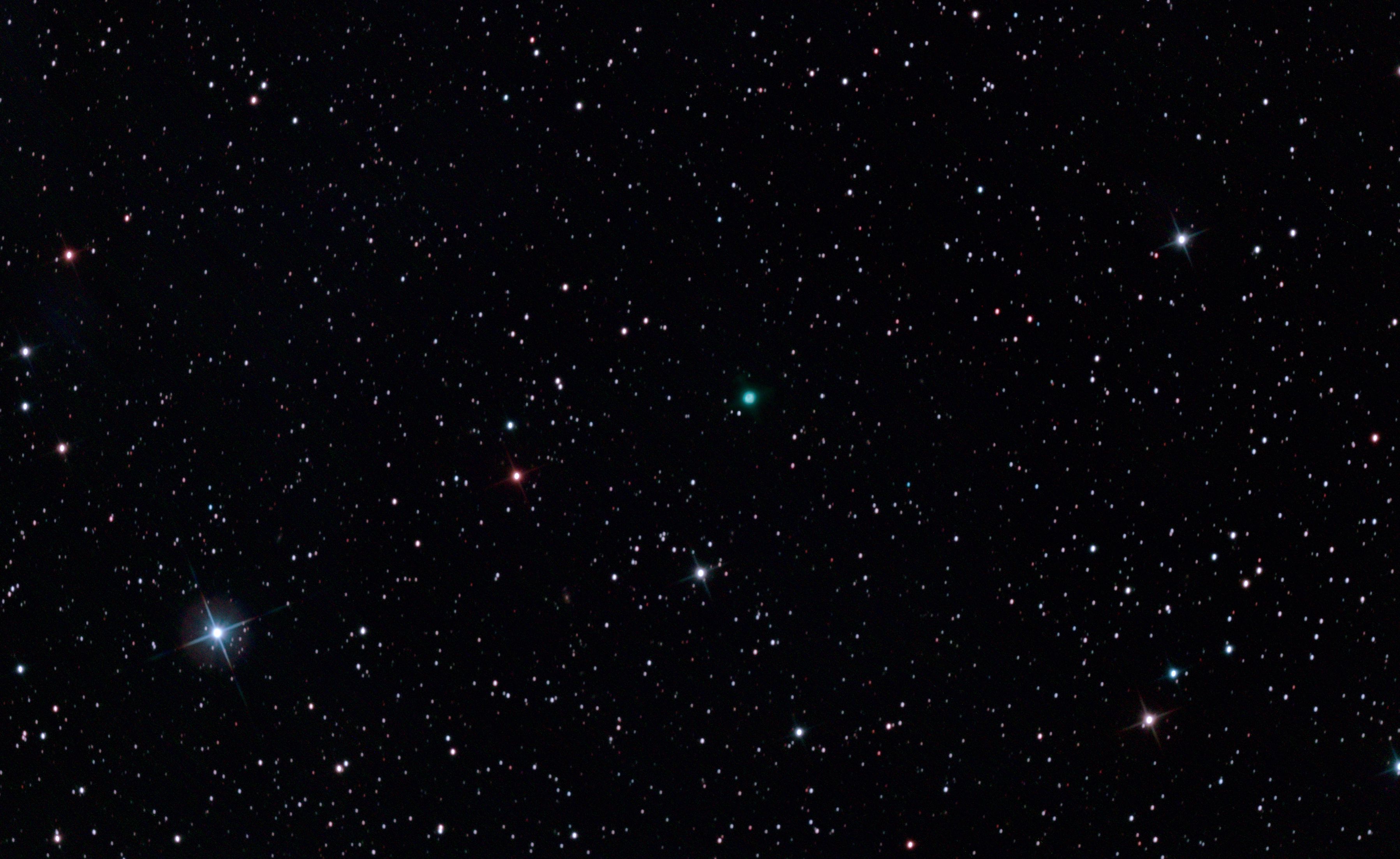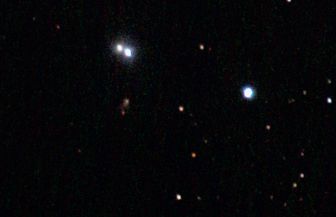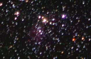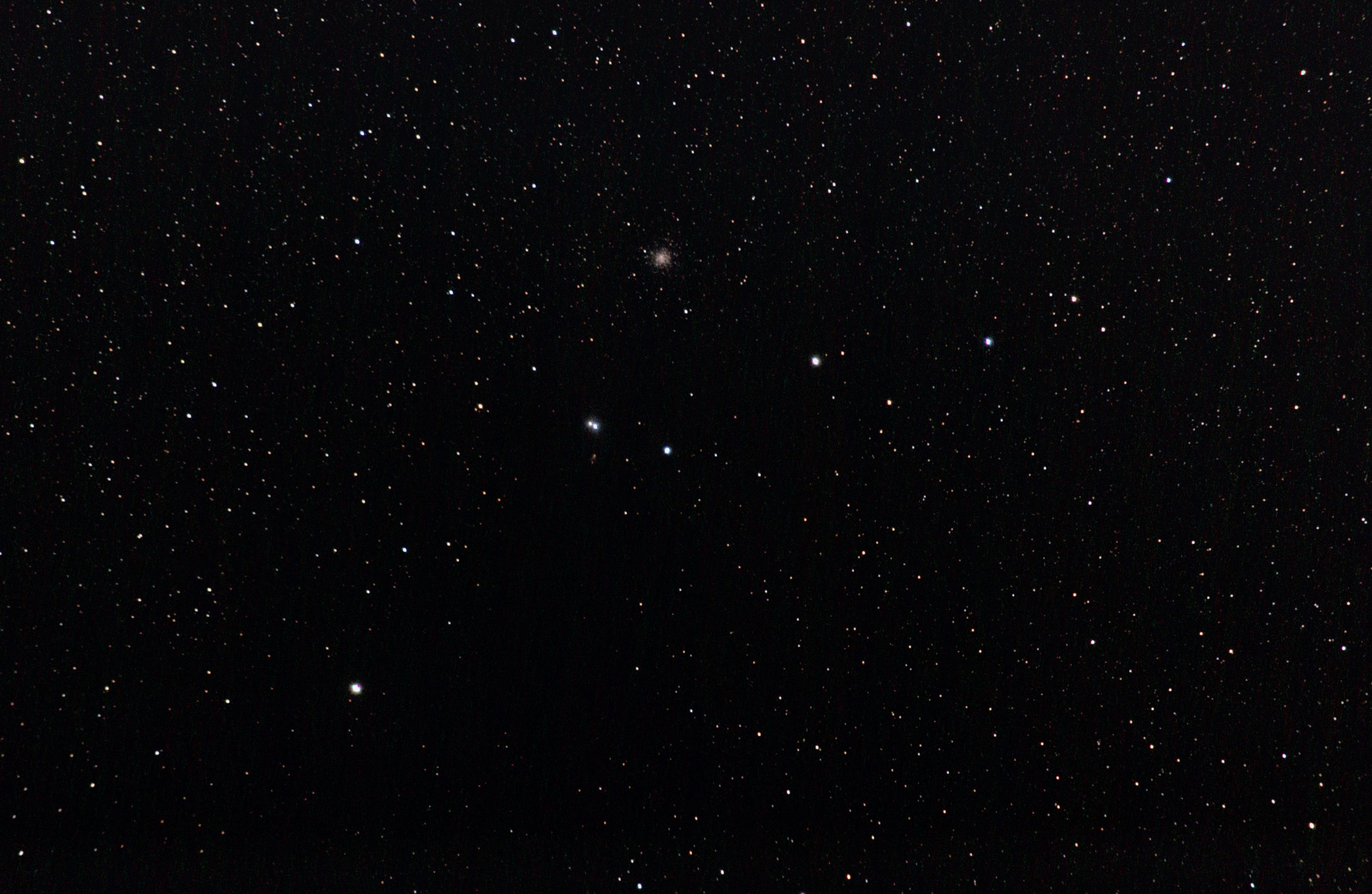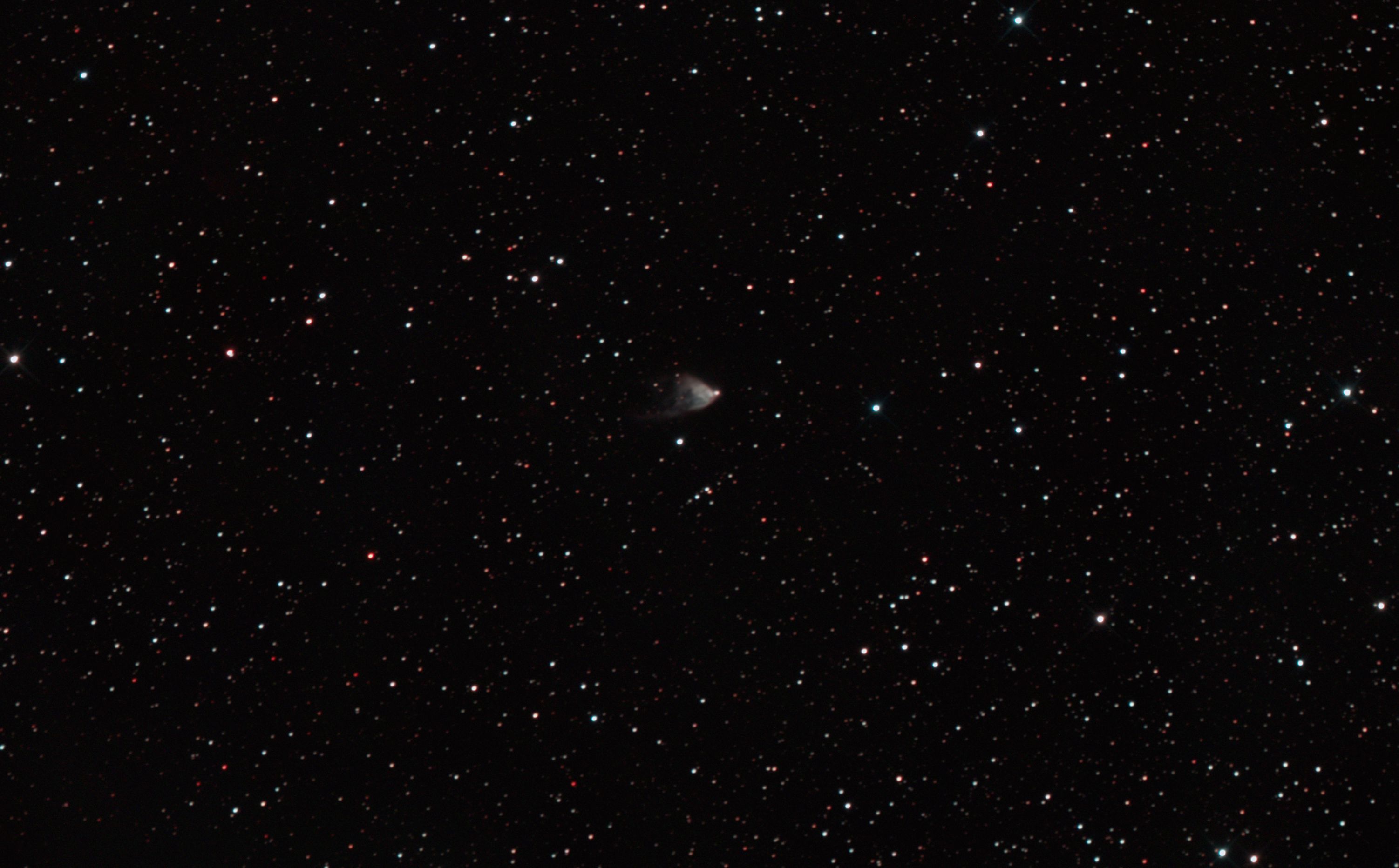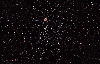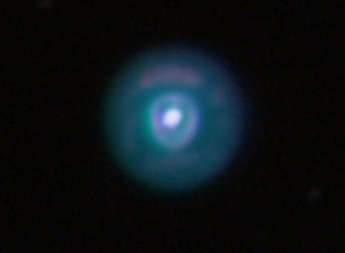am 1.8.2014 durch 250/1016mm Reflektor mit CLS-Filter, 6 Bilder bei 6400 ASA je 2s - 20s auf Canon EOS 1100Da Sternbild Wassermann 1,4' 8,9m unterschiedlich Asterismus (zufällige Konstellation von Sternen unterschiedlicher Entfernung) |