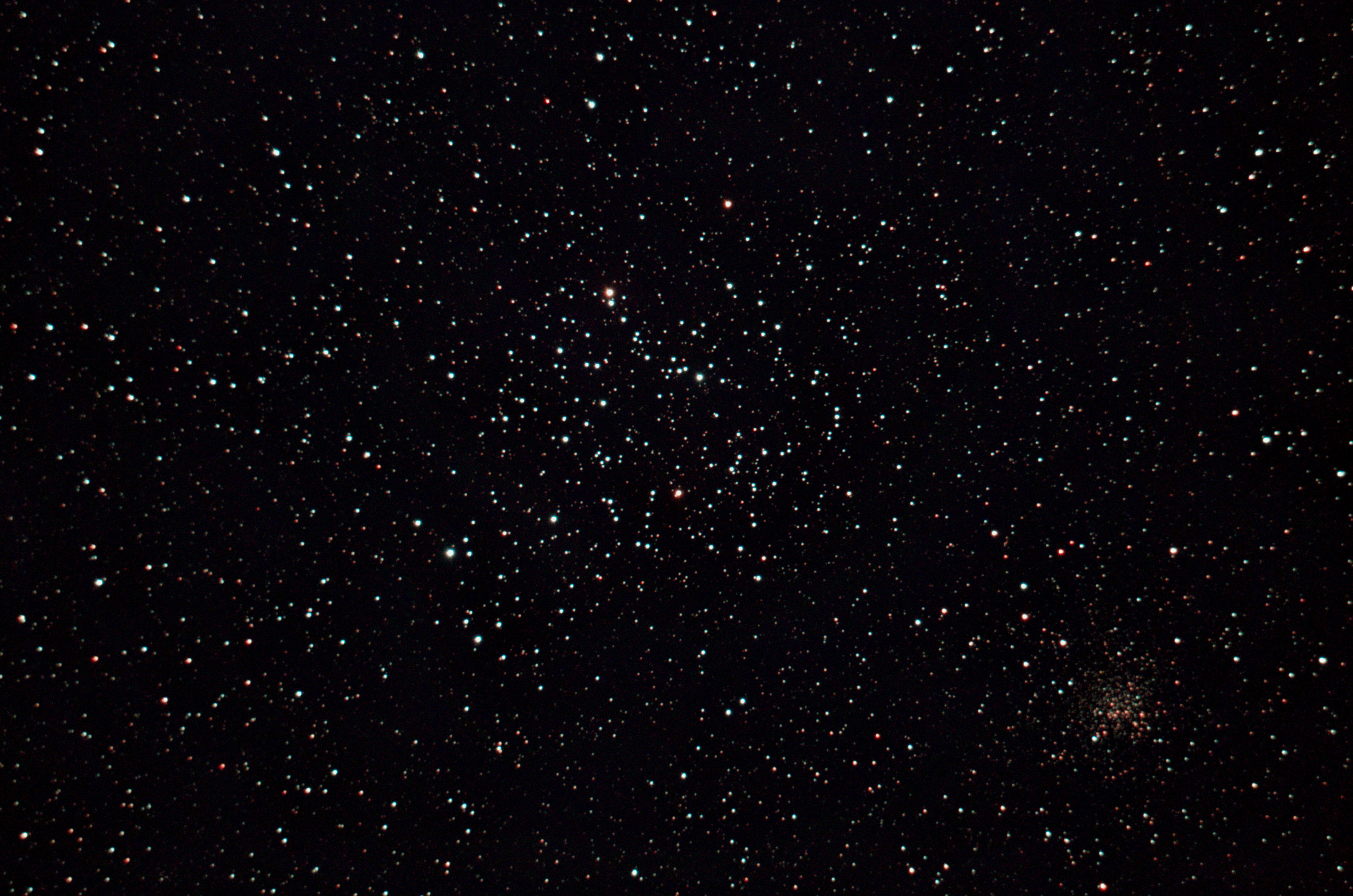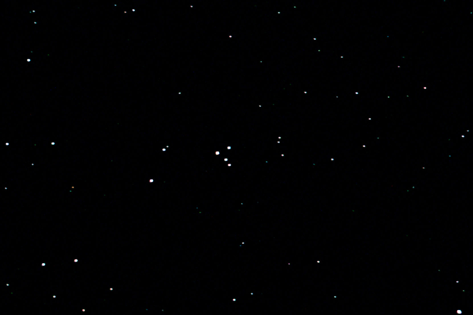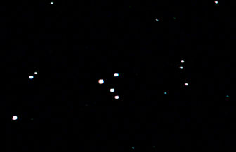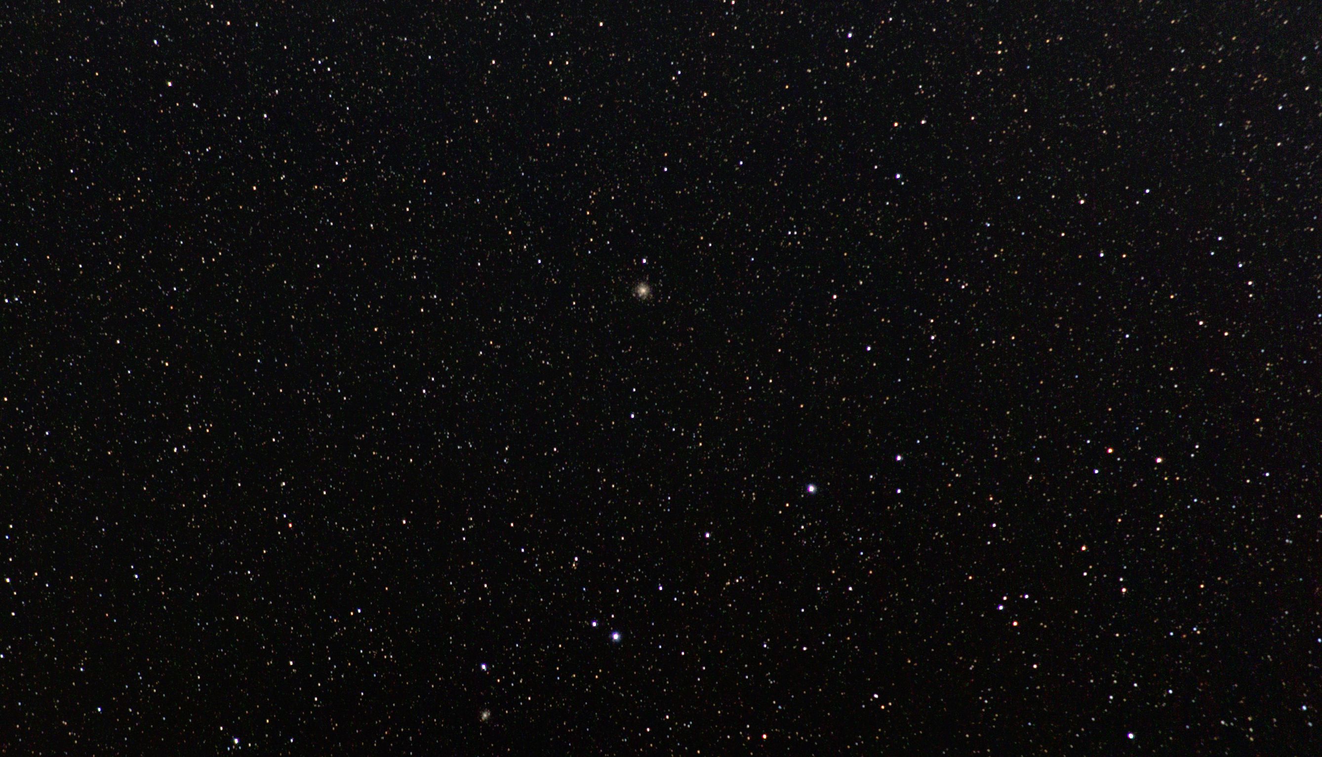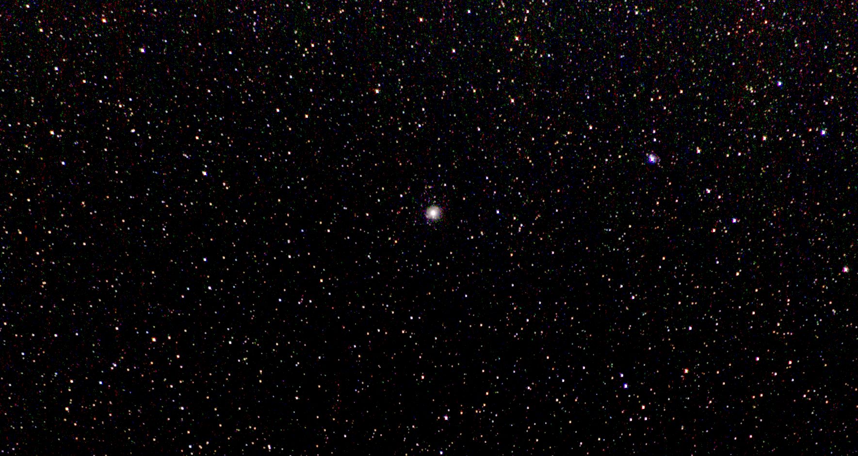 am 1.8.2014 durch 250/1016mm Reflektor mit CLS-Filter, 6 Bilder bei 6400 ASA je 2s - 20s auf Canon EOS 1100Da Sternbild Wassermann 1,4' 8,9m unterschiedlich Asterismus (zufällige Konstellation von Sternen unterschiedlicher Entfernung) |