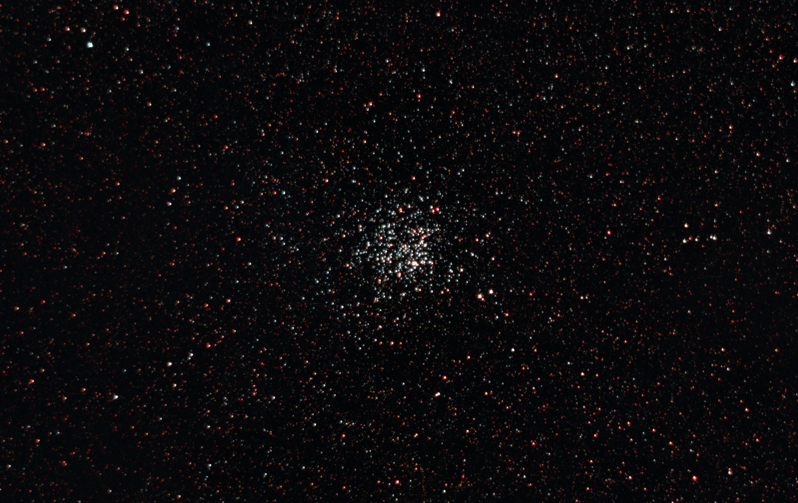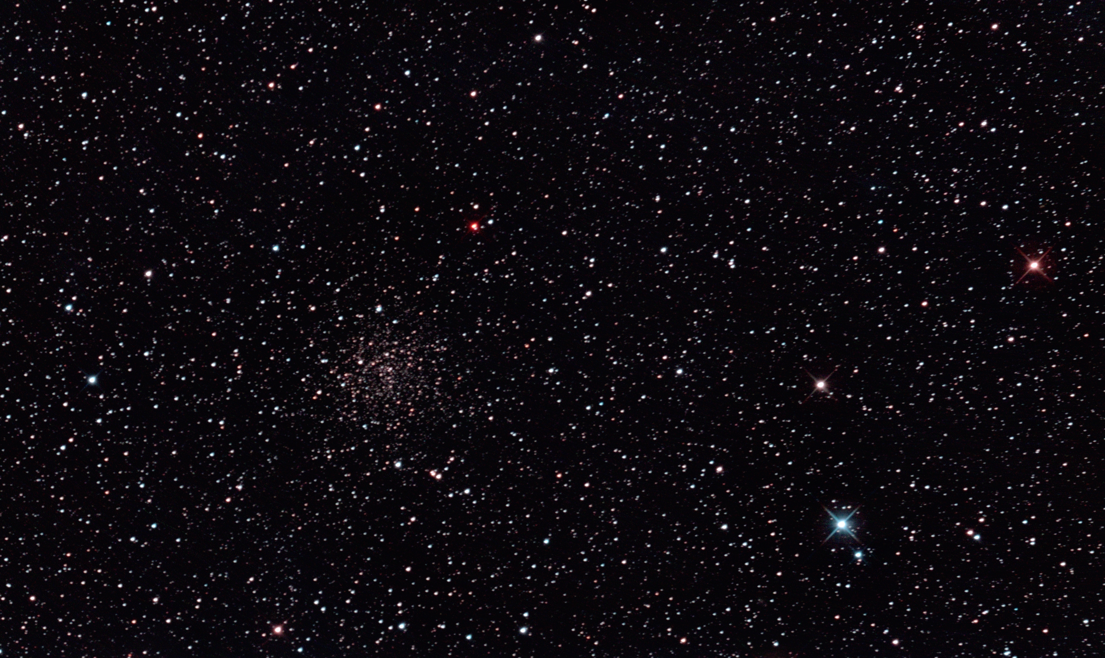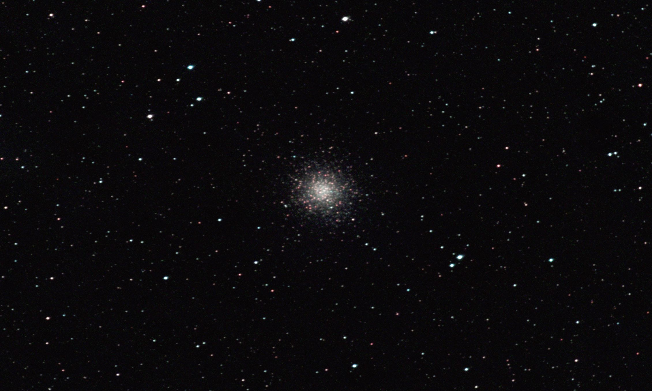 am 21.8.2015, Komposit aus 50 Einzelbildern mit Canon EOS 1100Da, CLS-Filter, je 55s bei 800 ASA belichtet im Primärfokus des 250/1016 N Sternbild Schütze 6,8' 8,6m 67 500 ly Kugelsternhaufen |