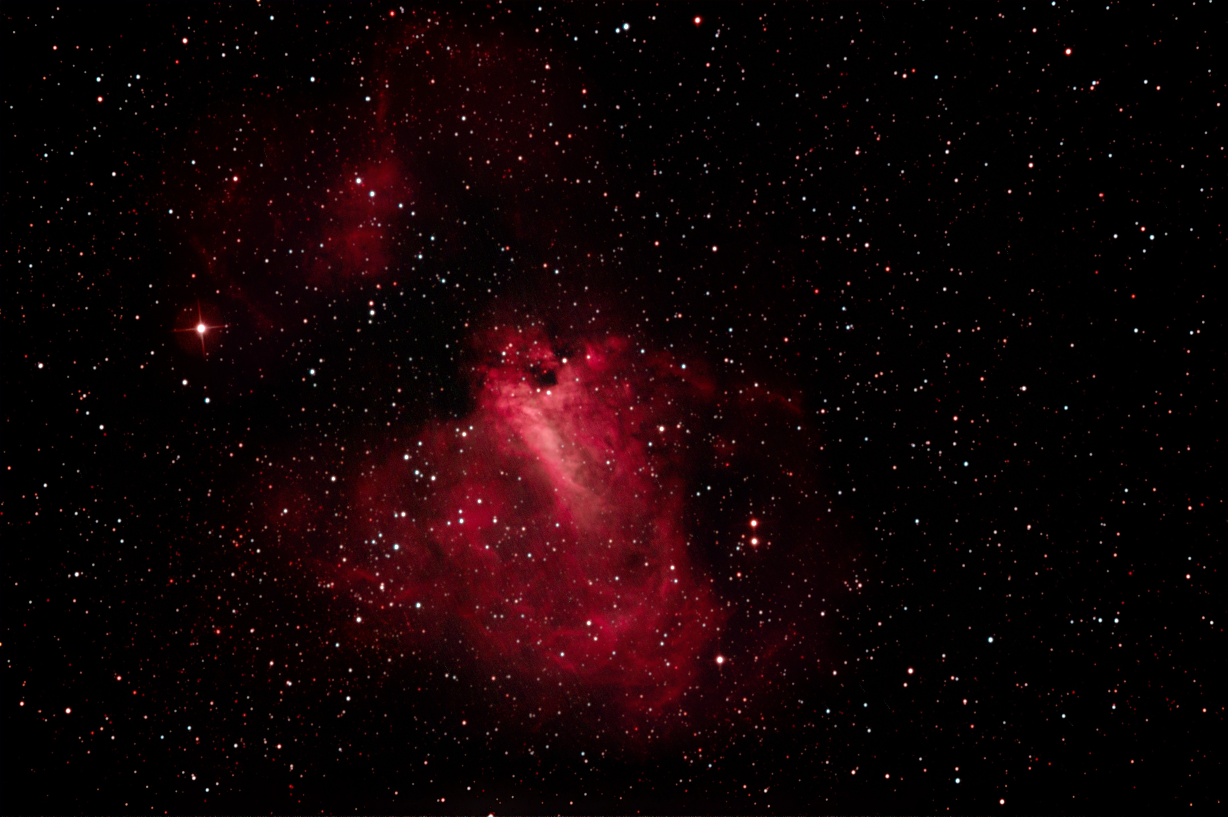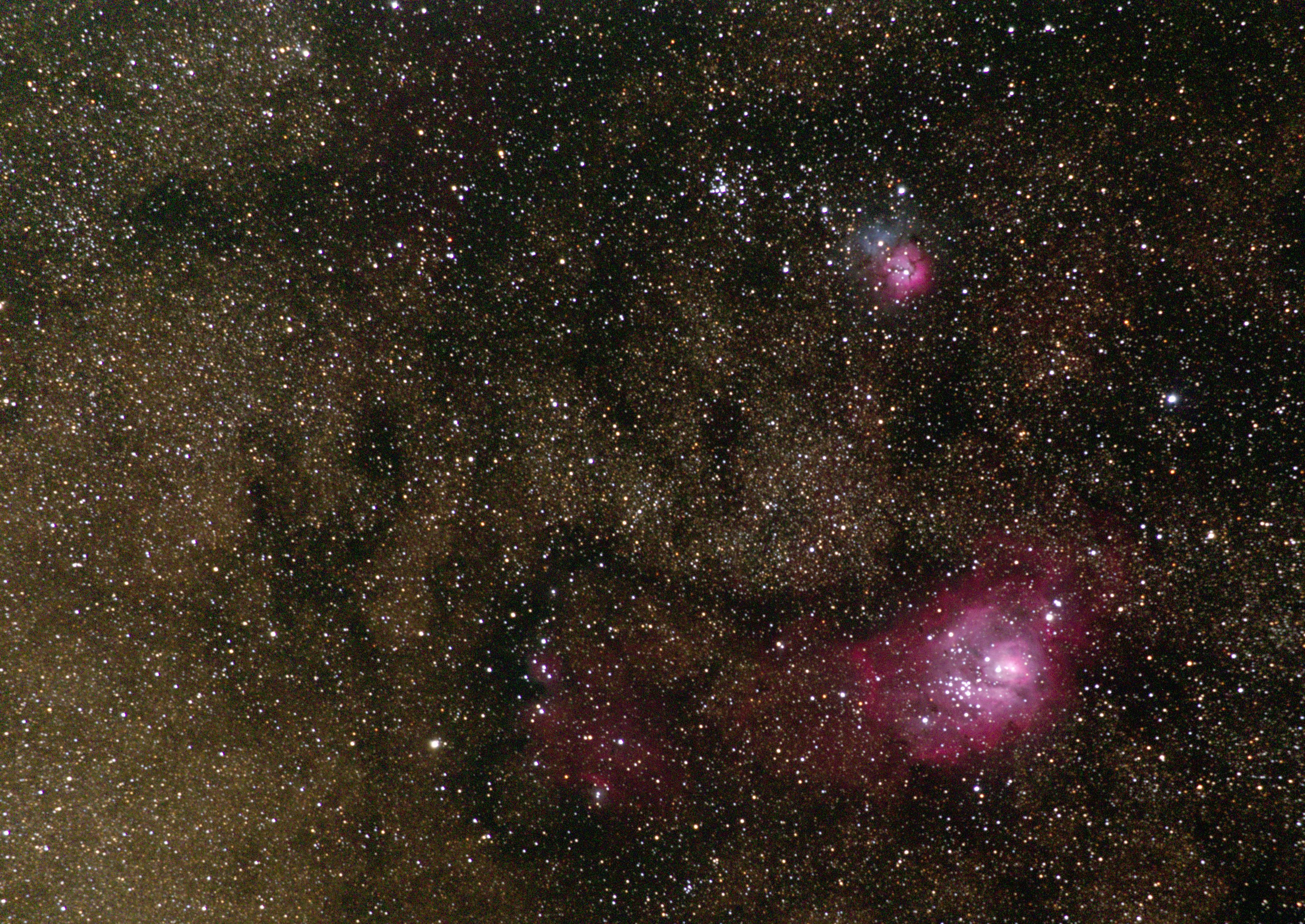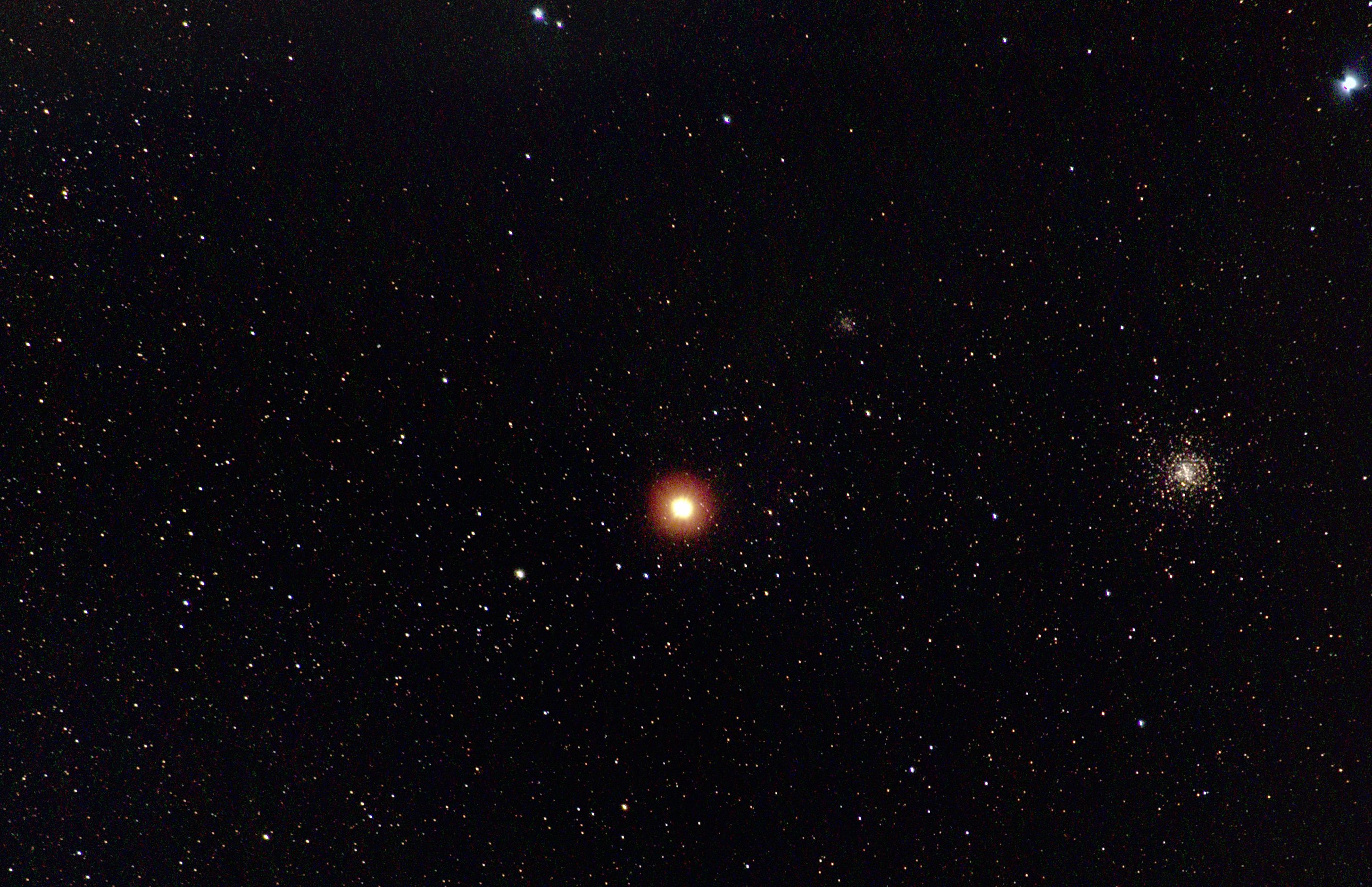 am 21.8.2015, Komposit aus 50 Einzelbildern mit Canon EOS 1100Da, CLS-Filter, je 55s bei 800 ASA belichtet im Primärfokus des 250/1016 N Sternbild Schütze 6,8' 8,6m 67 500 ly Kugelsternhaufen |