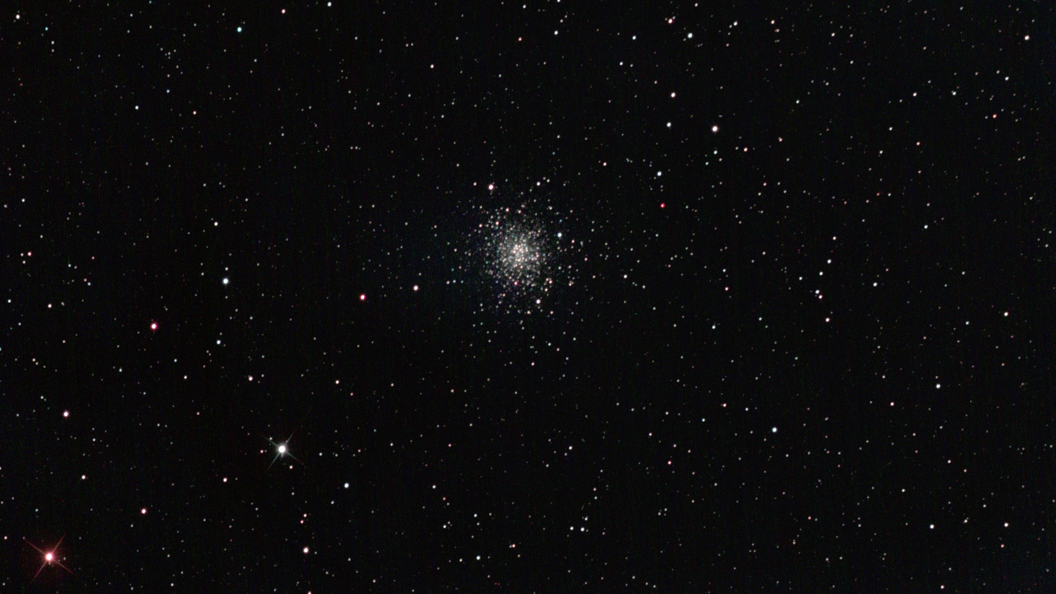 am 14.10.2017 Komposit aus 250 Einzelbildern mit Canon EOS 1100Da je 30s bei 800 ASA belichtet im Primärfokus des 250/1016 N Sternbild Pegasus 18' 6,2m 33 000 ly Kugelsternhaufen |