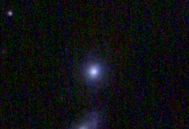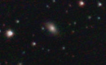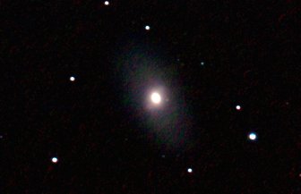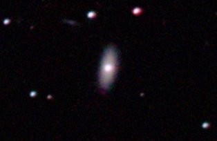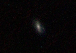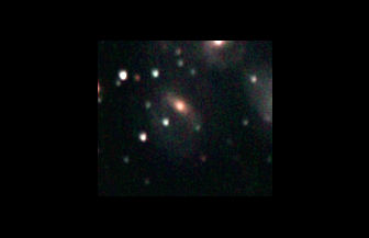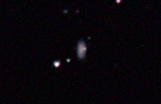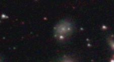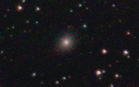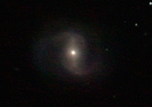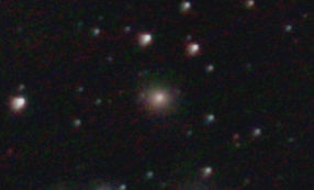 am 27.10.2014, 80 Aufnahmen mit Canon EOS 1100Da je 145s bei 800 ASA belichtet im Primärfokus des 250/1016 SN Sternbild Perseus 1,4'x1,1' 12,6m ca. 240 Millionen ly elliptische Galaxie, Teil des Galaxienhaufens Abell 426 |