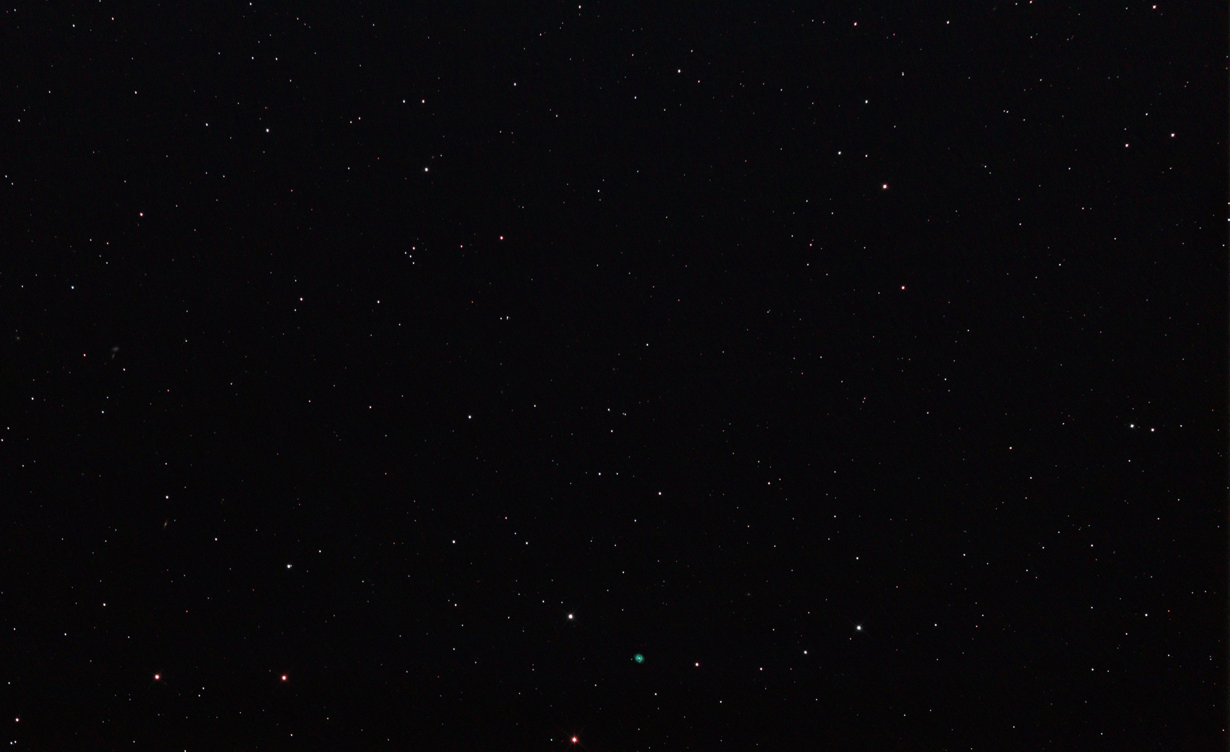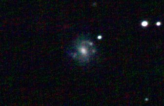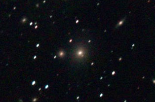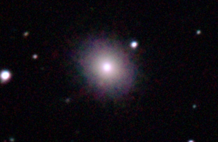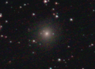 am 27.10.2014, 80 Aufnahmen mit Canon EOS 1100Da je 145s bei 800 ASA belichtet im Primärfokus des 250/1016 SN Sternbild Perseus 0,9'x1,1' 13,1m ca. 240 Millionen ly elliptische Galaxie, Teil des Galaxienhaufens Abell 426 |