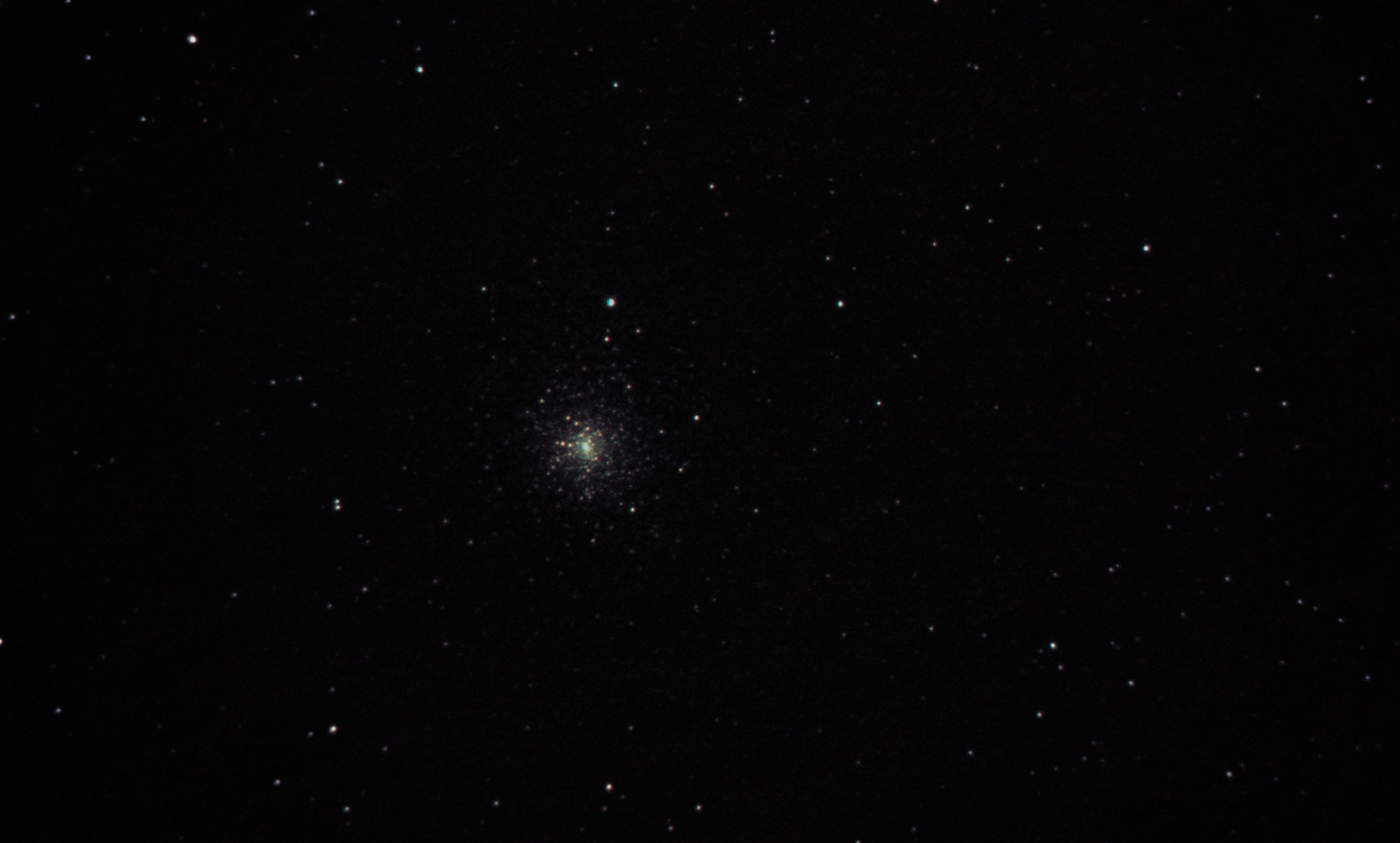 am 19.10.2012 durch 250/1016mm Reflektor, Canon EOS 1100Da mit CLS-Filter, 205 Bilder bei 6400 ASA je 8s belichtet 12' 6,9m 26 000 ly Kugelsternhaufen |