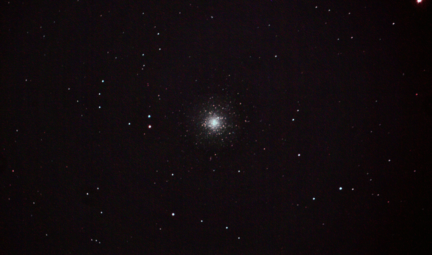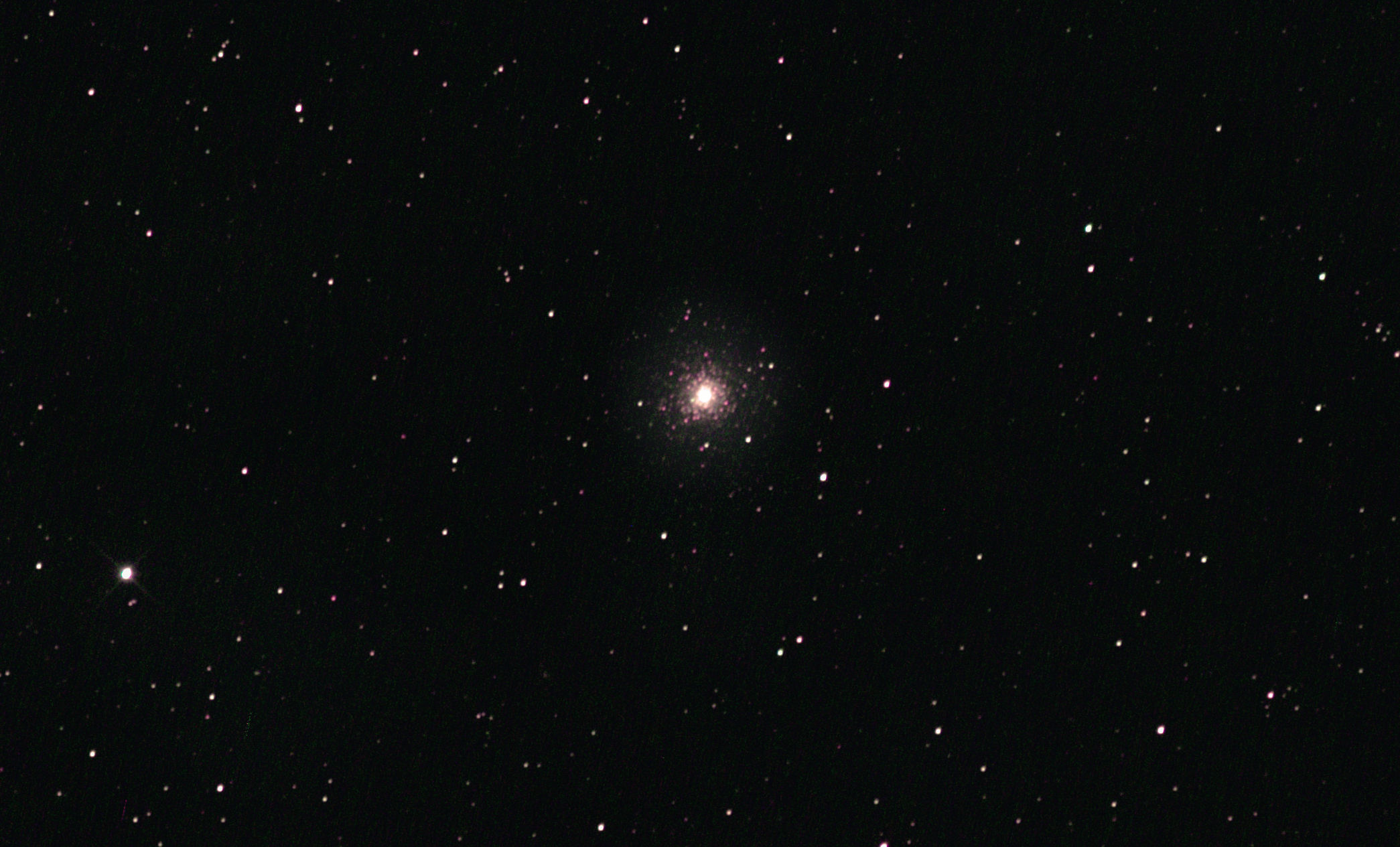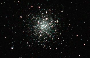am 25.5.2012 Komposit aus 80 Einzelbildern mit umgebauter Canon EOS 1100Da je 20s bei 6400 ASA belichtet im Primärfokus des 250/1016 SN Sternbild Leier 8,5m 33 000 ly Kugelsternhaufen |