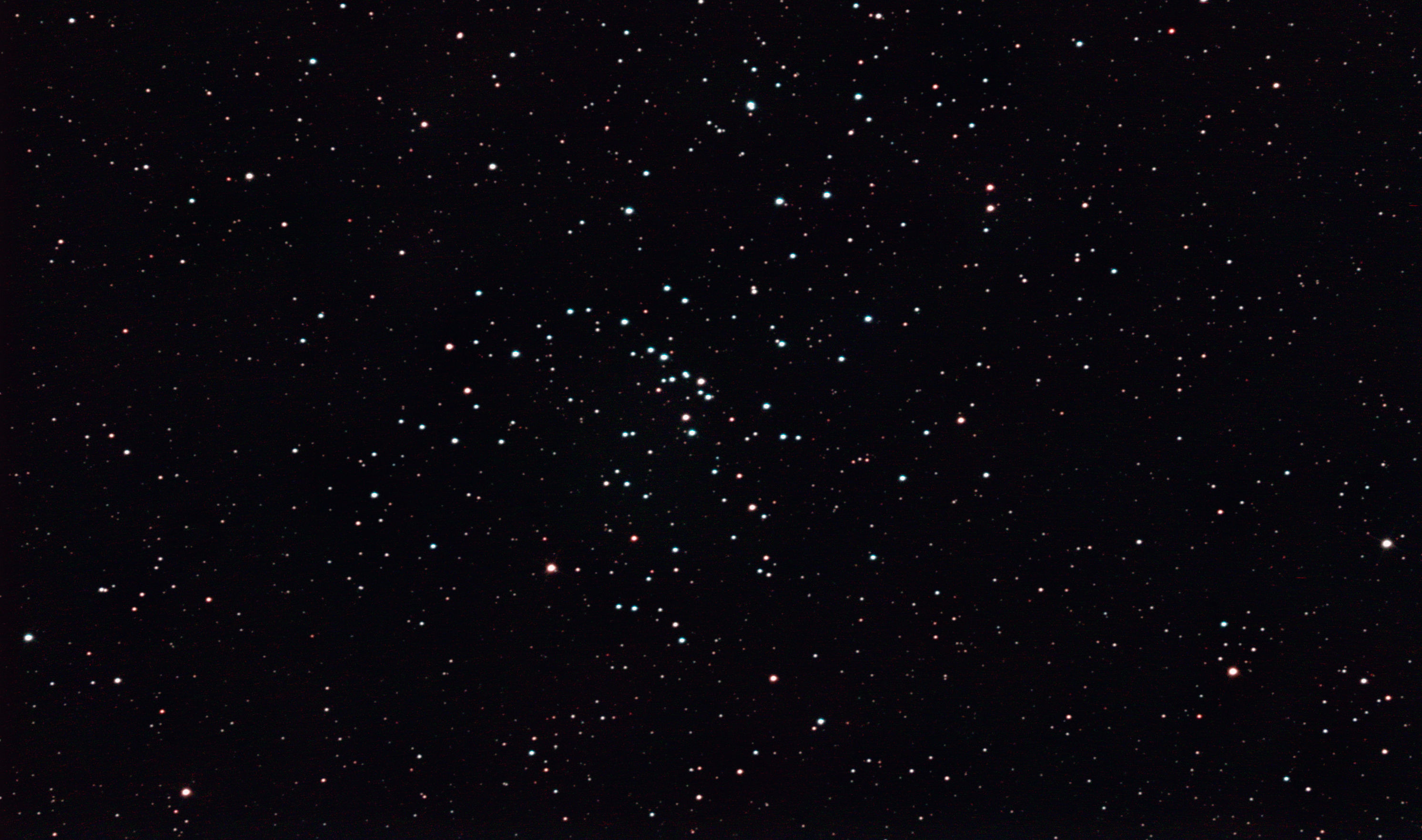 am 28.8.2016, 60 Aufnahmen mit je 165s bei 800 ASA durch das 250/1016 N im Primärfokus auf Canon EOS 1100Da, CLS Filter, addiert mit Fitswork Sternbild Pegasus 18' 6,4m Offener Sternhaufen |