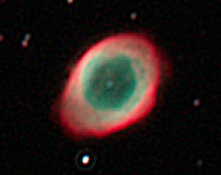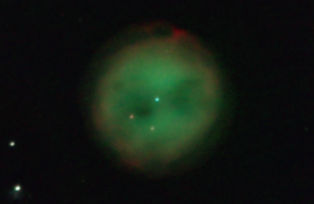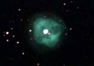 am 8.7.2013 Komposit aus 400 Einzelbildern mit Canon EOS 1100Da bei 6400 ASA, CLS-Filter belichtet je 1s bis 40s im Primärfokus des 150/1200 N Sternbild Wassermann 0,5' 2400 ly Planetarischer Nebel |