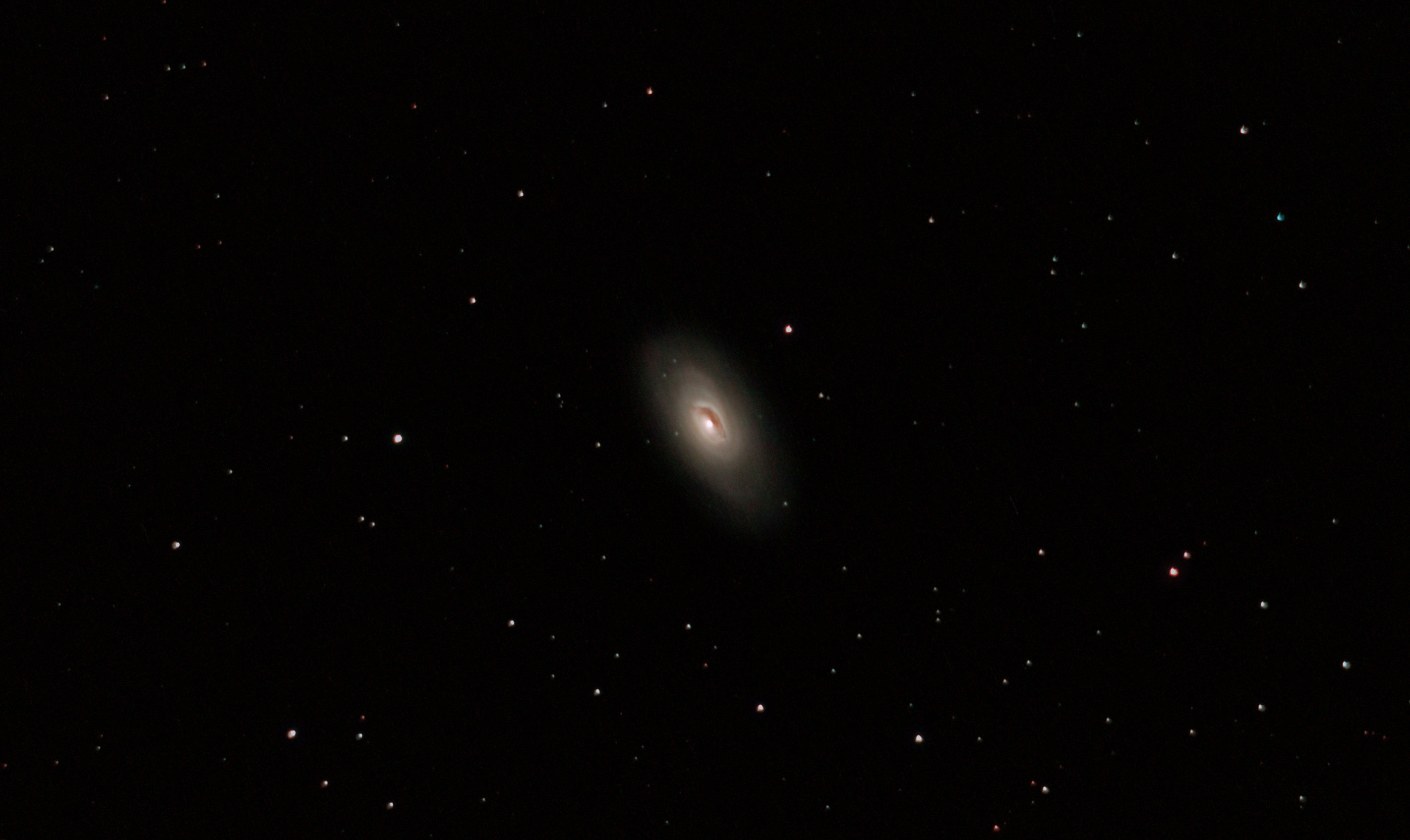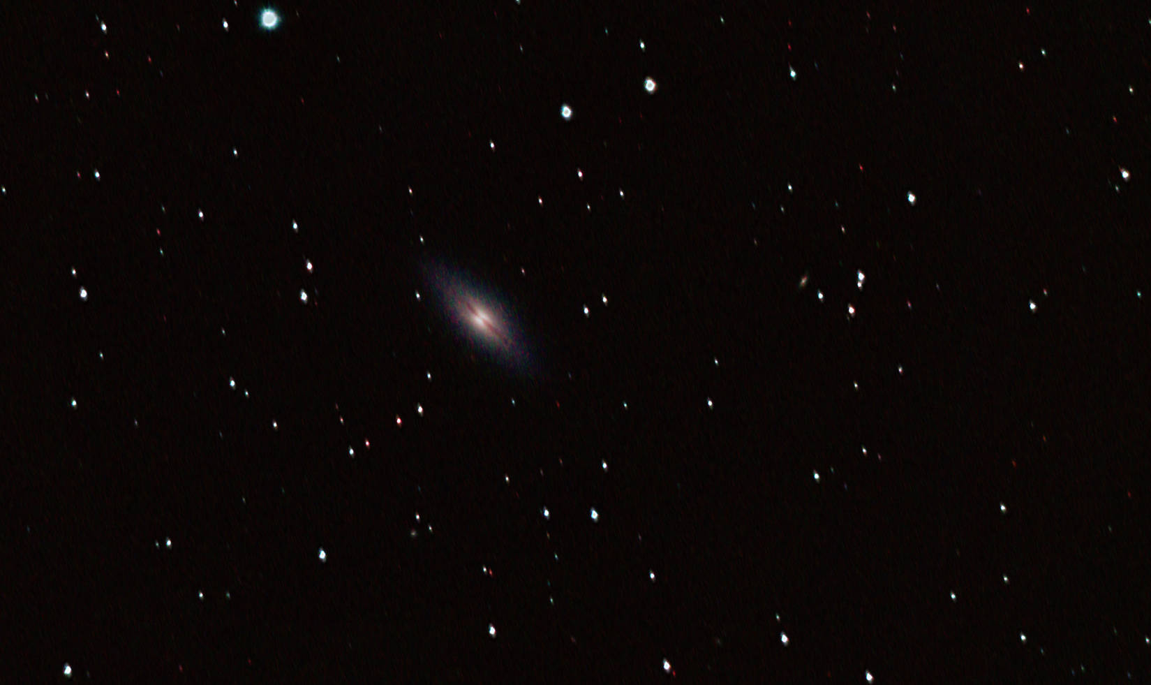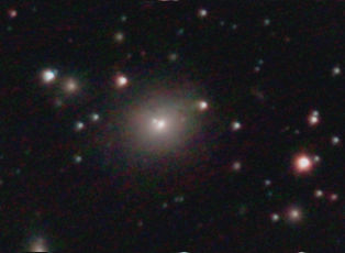 am 14.8.2012, 90 Aufnahmen mit Canon EOS 1100Da je 30s bei 6400 ASA belichtet im Primärfokus des 250/1016 SN Sternbild Pegasus 1,6'x1,3' 12,4m 400 Millionen ly Galaxie im Zentrum des Galaxienhaufens Abell 2634 |