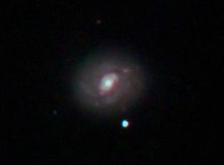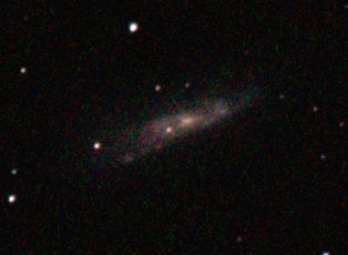 10.-12.10.2018 durch 250/1016mm N-Reflektor, Canon EOS 1100Da mit CLS-Filter, 300 Bilder bei 800 ASA je 120s Sternbild Widder 7,2'x4,3' 10,3m 115 Millionen ly Balkenspiralgalaxie |