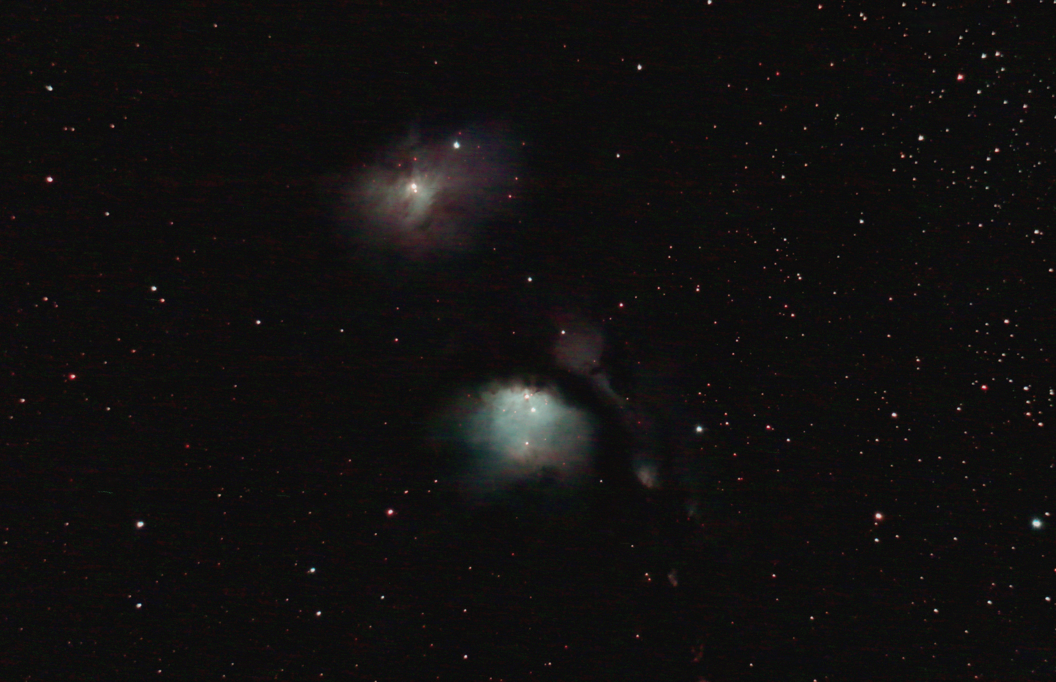 am 2. und 3.10.2013, Belichtungszeit 6h, Einzelbilder je 30s durch das 250/1016 SN im Primärfokus auf Canon EOS 1100Da bei 6400 ASA, CLS-Filter, addiert mit Fitswork Sternbild Pegasus 2,5'x2,3'