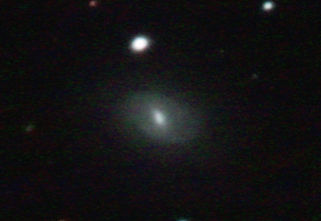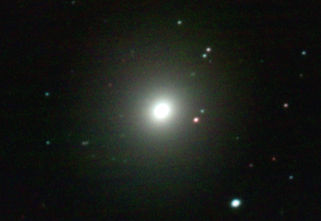 am 27.10.2014, 80 Aufnahmen mit Canon EOS 1100Da je 145s bei 800 ASA belichtet im Primärfokus des 250/1016 SN Sternbild Perseus 0,9'x0,7' 13,3m ca. 240 Millionen ly elliptische Galaxie, Teil des Galaxienhaufens Abell 426 |