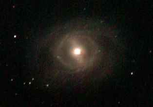 am 27.10.2014, 80 Aufnahmen mit Canon EOS 1100Da je 145s bei 800 ASA belichtet im Primärfokus des 250/1016 SN Sternbild Perseus 0,7'x1,2' 12,7m ca. 240 Millionen ly Spiralgalaxie, Teil des Galaxienhaufens Abell 426 |