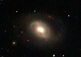 am 27.10.2014, 80 Aufnahmen mit Canon EOS 1100Da je 145s bei 800 ASA belichtet im Primärfokus des 250/1016 SN Sternbild Perseus 0,9'x0,6' 13,8m ca. 240 Millionen ly Spiralgalaxie, Teil des Galaxienhaufens Abell 426 |