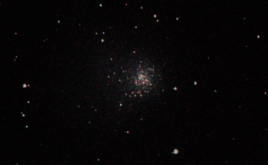 am 25.5.2012 Komposit aus 80 Einzelbildern mit Canon EOS 1100Da je 20s bei 6400 ASA belichtet im Primärfokus des 250/1016 SN Sternbild Pfeil 7,2' 6,1m 13 000 ly Kugelsternhaufen |