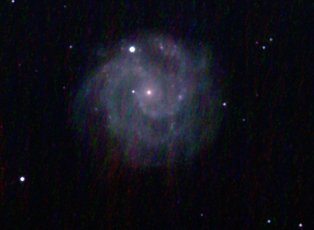 am 10.7.2024, 250/1016 SN-Teleskop, 30 Bilder, je 155s mit Canon EOS 1100Da, CLS-Filter bei 800 ASA, addiert mit Fitswork Sternbild Schwan 4'x1,4' 11,5m 45 Millionen ly Spiralgalaxie |