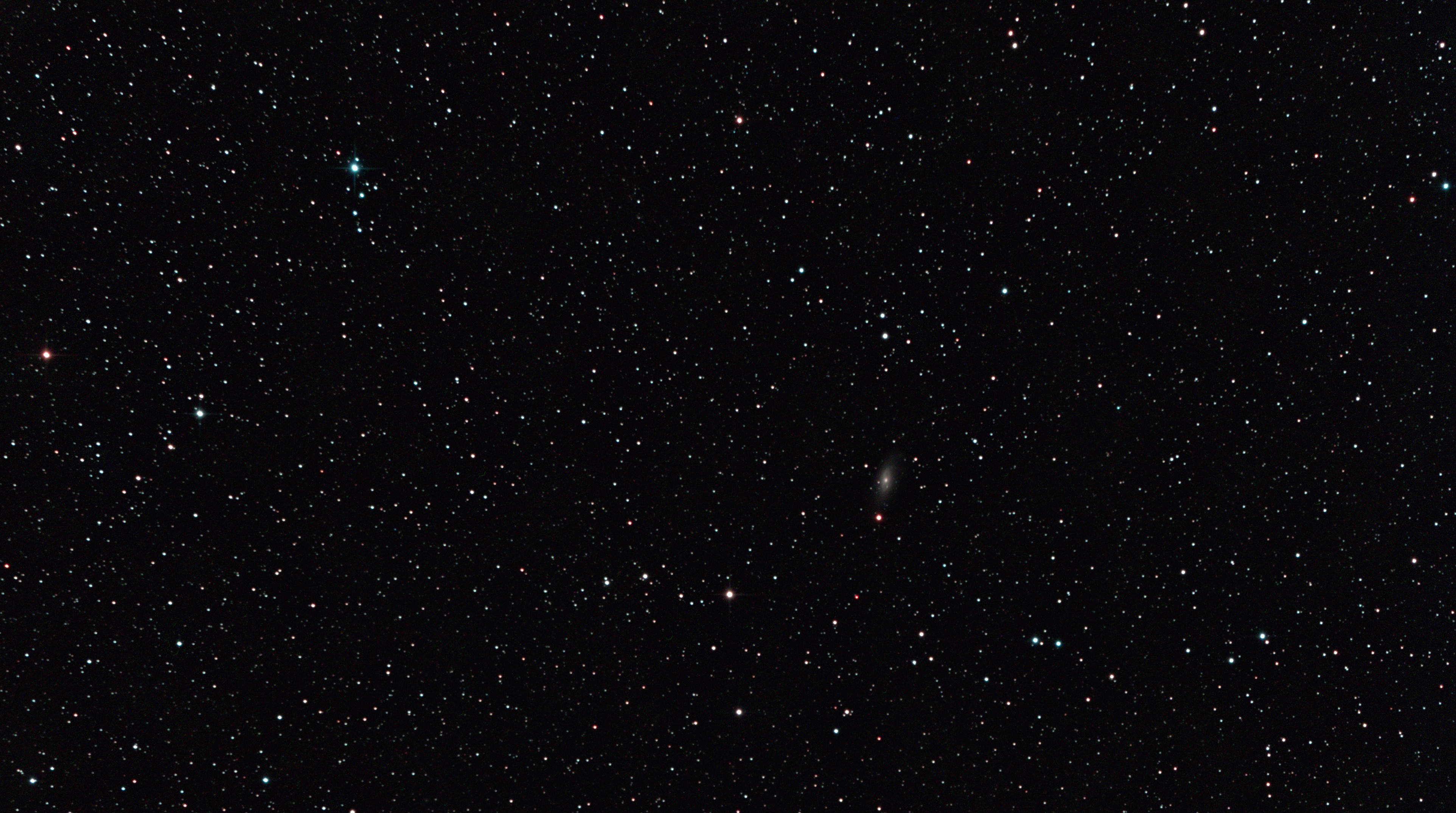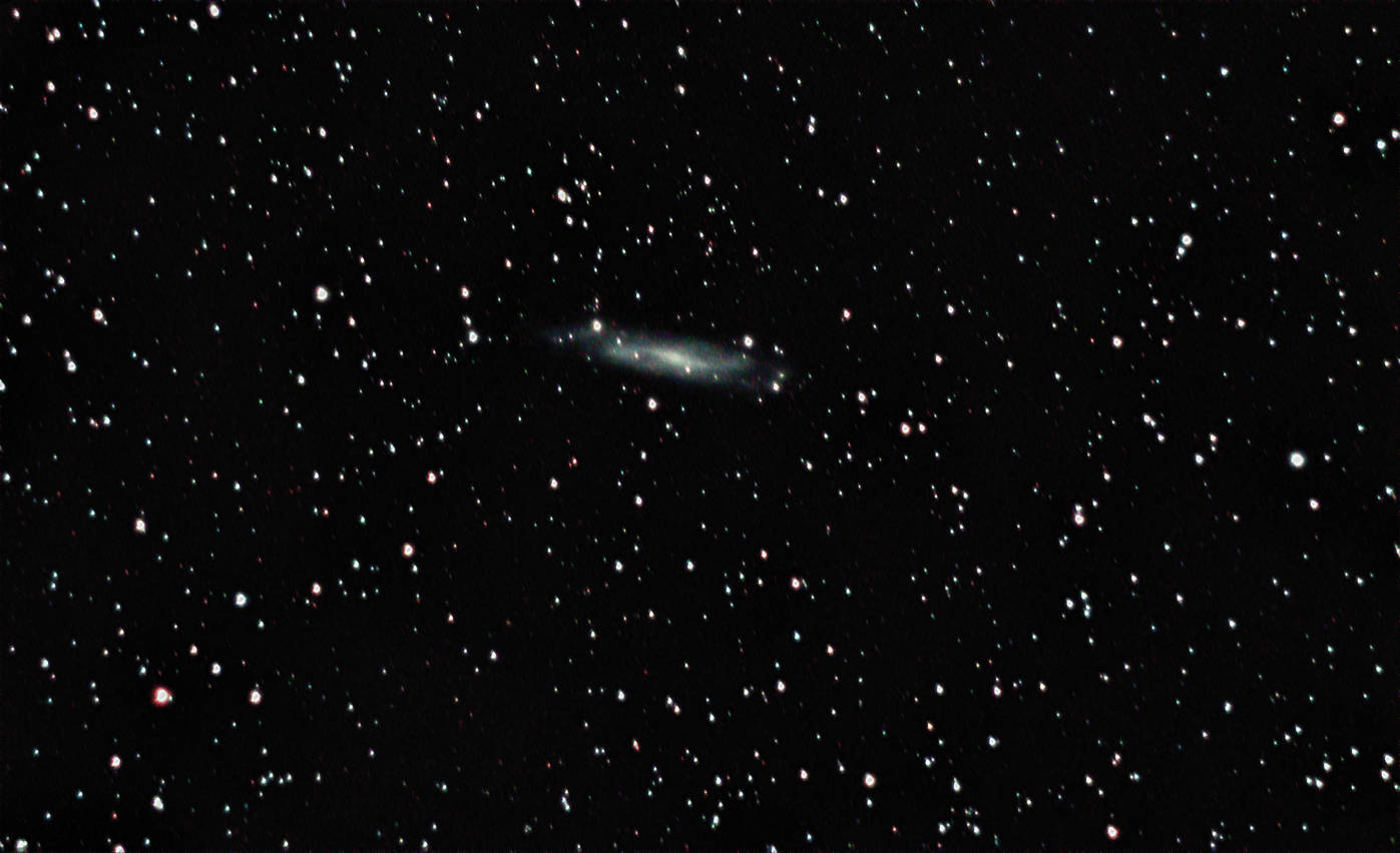 am 10.10.2015, 40 Einzelbilder je 145s durch das 250/1016 N im Primärfokus auf Canon EOS 1100Da bei 800 ASA, CLS-Filter, addiert mit Fitswork Sternbild Pegasus 4,4'x1,7' 12,3m 60 Millionen ly Spiralgalaxie |