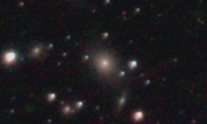 am 3.8.2012, 75 Aufnahmen mit Canon EOS 1100Da je 30s bei 6400 ASA belichtet im Primärfokus des 250/1016 SN Sternbild Fische 1,1' 13,1m 230 Millionen ly elliptische Galaxie, Teil der NGC-507-Gruppe (Galaxienhaufen)
