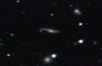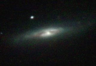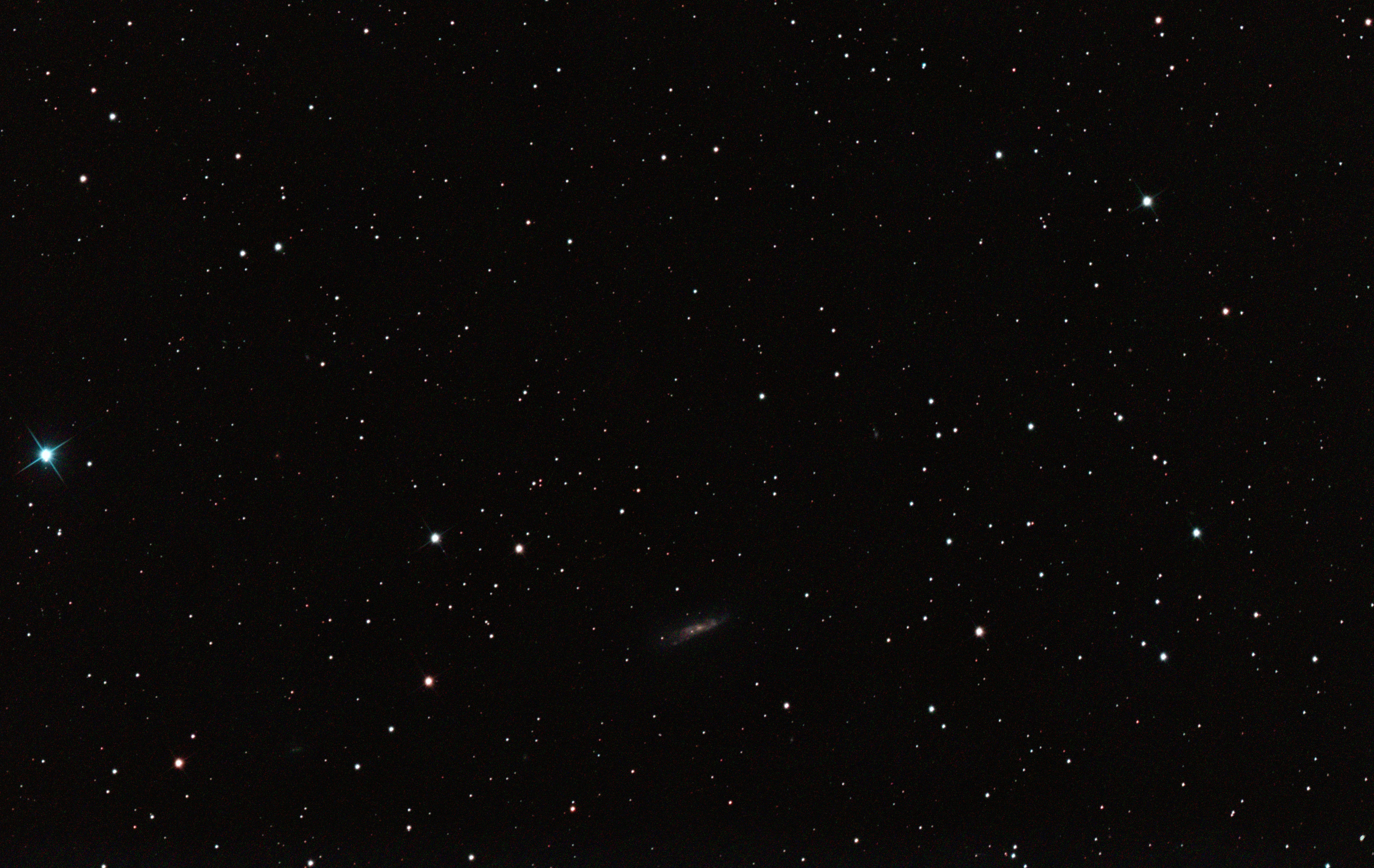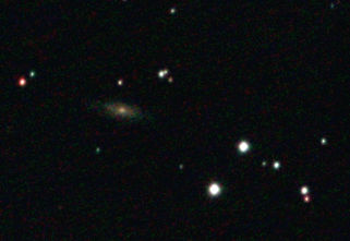 am 14.8.2012, 90 Aufnahmen mit Canon EOS 1100Da je 30s bei 6400 ASA belichtet im Primärfokus des 250/1016 SN Sternbild Pegasus 1,5'x0,6' 14m 400 Millionen ly Spiralgalaxie im Galaxienhaufen Abell 2634 |