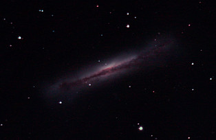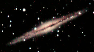 am 15.8.2012, Komposit aus 95 Einzelbildern mit Canon EOS 1100Da, CLS-Filter, je 20s bei 6400 ASA belichtet im Primärfokus des 250/1016 SN Sternbild Walfisch 7,6'x2,7' 10,6m 60 Millionen ly Balkenspiralgalaxie |