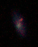 am 15.8.2012 durch 250/1016 mm SN-Reflektor mit Canon EOS 1100Da, CLS-Filter, 90 Aufnahmen je 25s bei 6400 ASA gemittelt mit Fitswork Sternbild Andromeda 18,6'x11,8' 7,9m 2,2 Millionen ly elliptische Galaxie |