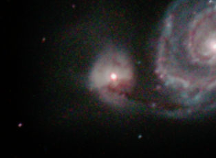 am 22.9.2012, Belichtungszeit 2h, Einzelbilder je 25s durch das 250/1016 SN im Primärfokus auf Canon EOS 1100Da bei 6400 ASA, CLS-Filter, addiert mit Fitswork Sternbild Pegasus 10,2'x4,2' 9,5m 50 Millionen ly Spiralgalaxie |