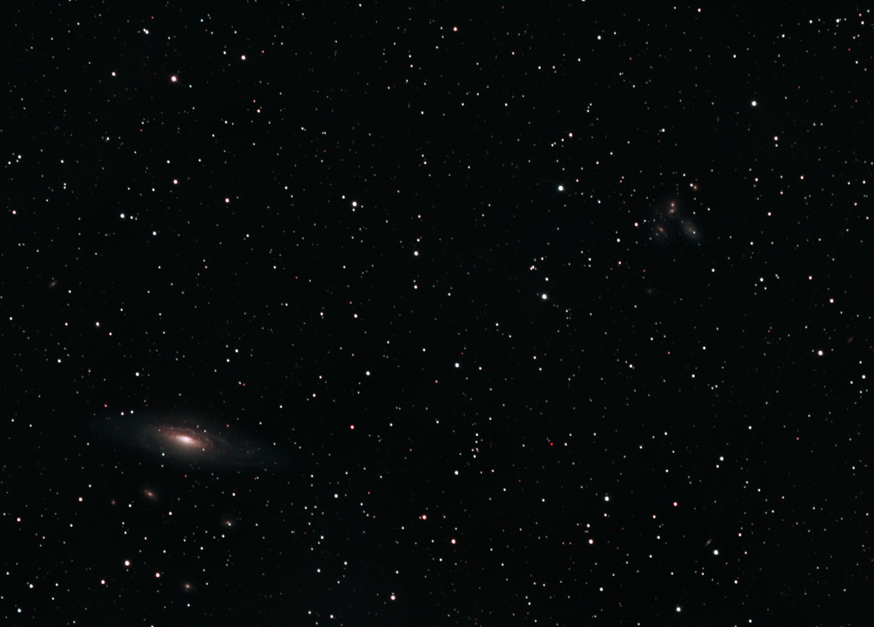 am 22.8.2015, Belichtungszeit 4h, Einzelbilder je 145s durch das 250/1016 N im Primärfokus auf Canon EOS 1100Da bei 800 ASA, CLS-Filter, addiert mit Fitswork Sternbild Pegasus 2,2'x1,1' 12,5m 35 Millionen ly Spiralgalaxie; Teil von Stephan's Quintett