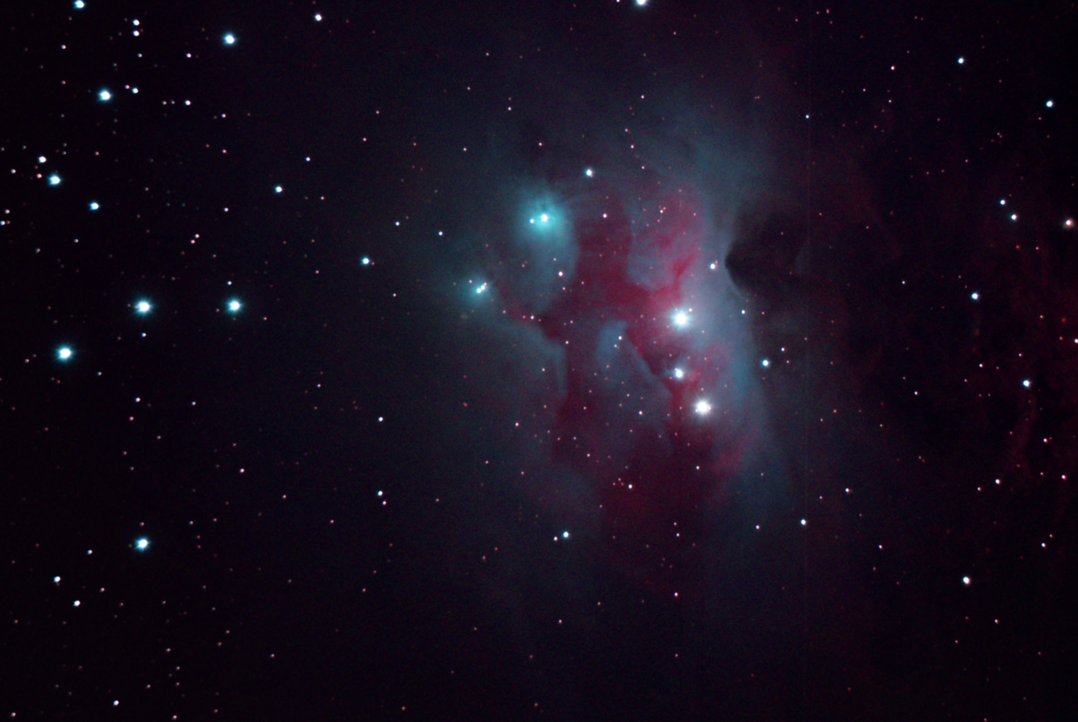 am 14.8.2012, 250/1016 SN-Teleskop, Canon EOS 1100Da mit CLS-Filter, 90 Bilder je 25s belichtet Sternbild Perseus 160' 1000 ly Gasnebel, HII-Region, Sternentstehungsgebiet |