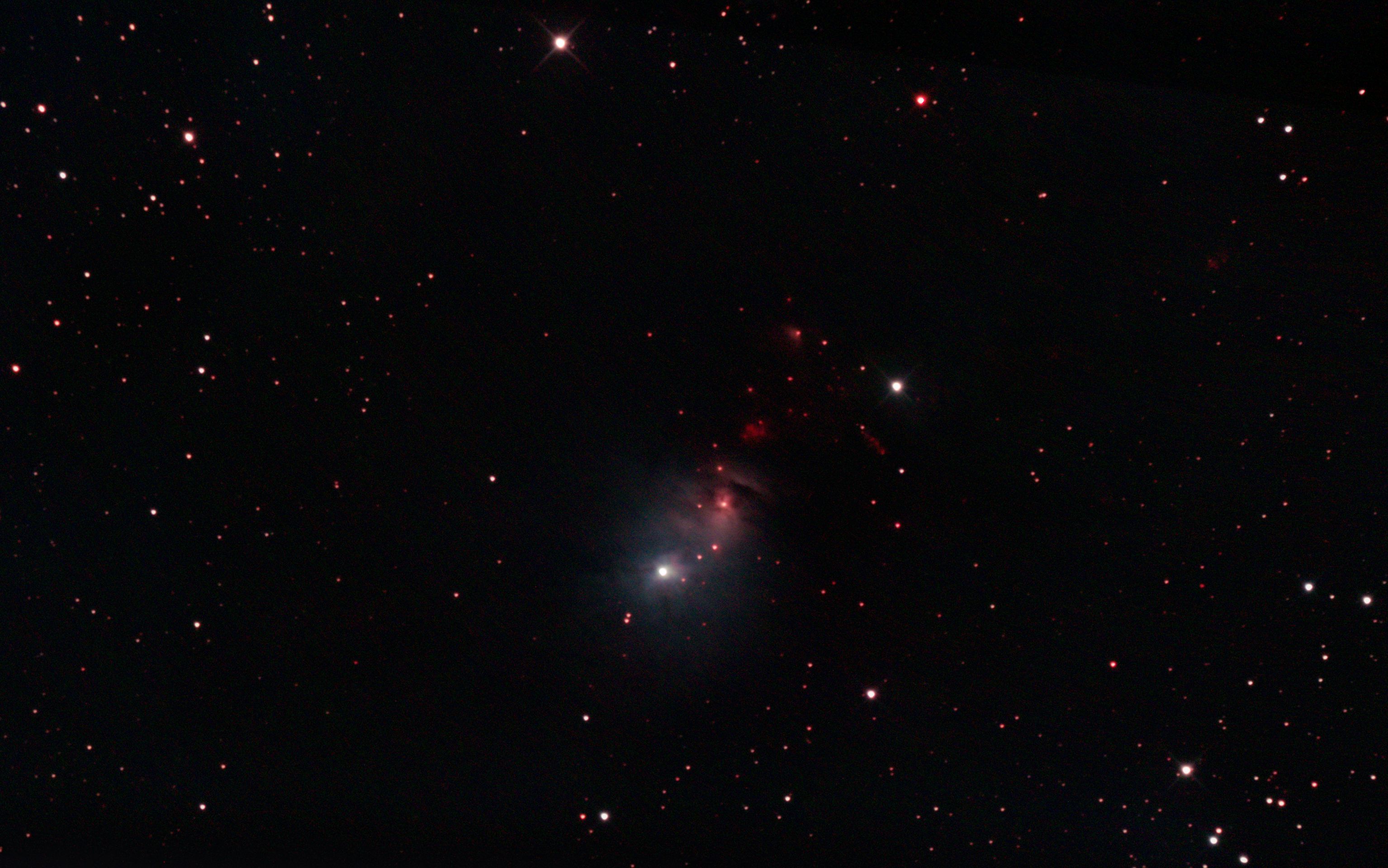 am 2.-3.12.2016, Aufnahmen mit Canon EOS 1100Da je 130-145s bei 800 ASA, Gesamtbelichtungszeit 10 Stunden, belichtet im Primärfokus des 250/1016 SN Sternbild Perseus 6' 1000 ly Reflexionsnebel, Sternentstehungsgebiet |