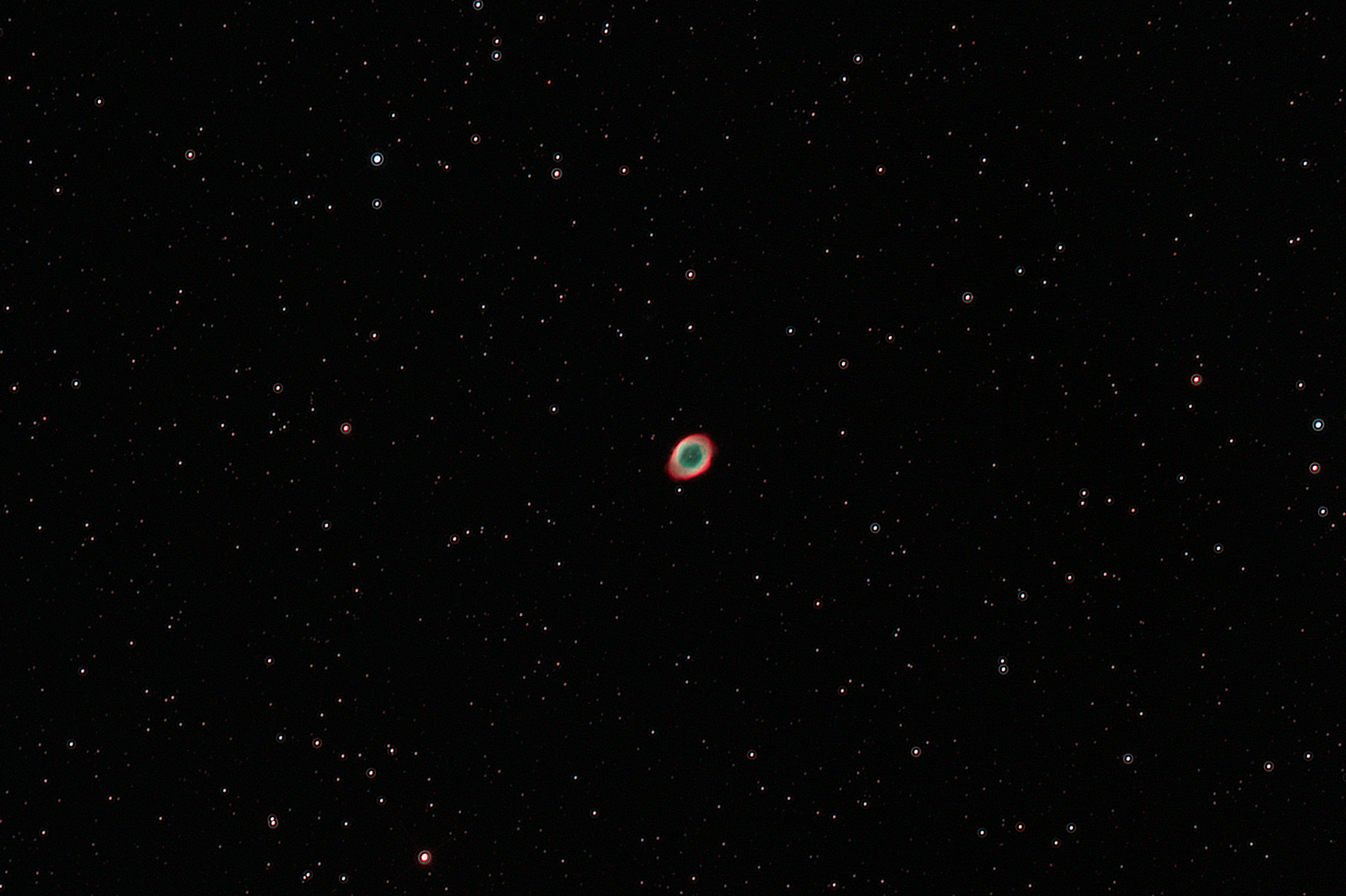 am 26.4.2025 Komposit aus 50 Einzelbildern mit Canon EOS 1100Da je 150s bei 800 ASA belichtet im Primärfokus des 250/1016 N Sternbild Leier 10' 9,5m 17 000 ly Offener Sternhaufen |
