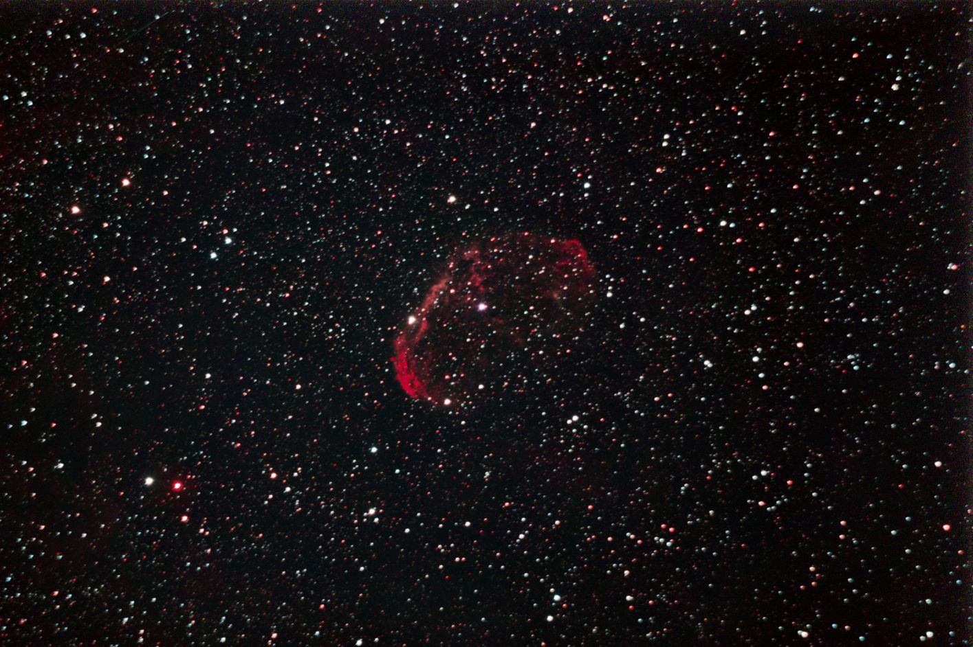 am 24.7.2012, 250/1016 SN-Teleskop, Canon EOS 1100Da mit CLS-Filter,75 Bilder je 20s belichtet Sternbild Schwan 12' 7m 1500 ly Supernovaüberrest |