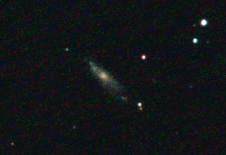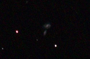 am 22.7.2001 - 15 min Belichtungszeit auf 1000 ASA Negativfilm (Ausschnittvergrößerung) Sternbild Herkules 3'x1,2' 11,4m 46 Millionen ly Spiralgalaxie