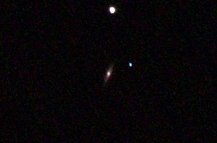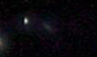Spiralgalaxie (kleinere Galaxie - Mitte); Der längliche Fleck links unten in der Vergrößerung ist die Spur des Kometen Catalina. |
