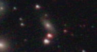 Spiralgalaxie (in der Übersichtsaufnahme ganz links, unterhalb der Mitte) |