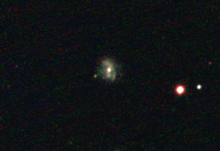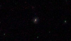 am 17.4.2020, 195 Aufnahmen, je 70s - 85s durch das 254/1016 N auf Canon EOS 1100Da mit CLS-Filter bei 1600 ASA, addiert mit Fitswork Sternbild Jungfrau 2,9'x2,3' 11,4m 61 Millionen ly Balkenspiralgalaxie (Virgo-Galaxienhaufen) (links unten) |