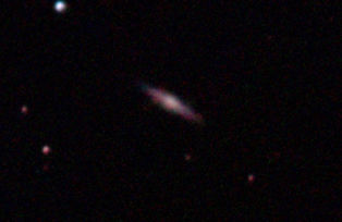 am 17.4.2020, 195 Aufnahmen, je 70s - 85s durch das 254/1016 N auf Canon EOS 1100Da mit CLS-Filter bei 1600 ASA, addiert mit Fitswork Sternbild Jungfrau 2,9'x0,7' 13m 99 Millionen ly Spiralgalaxie / Edge-On-Galaxie (Virgo-Galaxienhaufen) (oben rechts im Bild) |