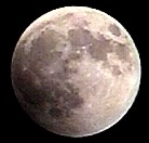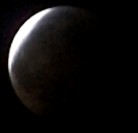 An diesem Tag waren die Witterungsbedingungen für die Beobachtung einer Mondfinsternis schlecht. Der Himmel war größtenteils bedeckt. Aber es gab während der Finsternis mehrmals für etwa 10 bis 15 Minuten große Wolkenlücken, die zumindest eine teilweise Beobachtung ermöglichten. Diese Finsternis habe ich erstmals mit einer Hi8 Videokamera aufgenommen. Die Auflösung der Bilder kann zwar mit Fotos bei weitem nicht konkurrieren, da ich zu diesem Zeitpunkt die Möglichkeit der Überlagerung von Bildern noch nicht verwendet habe, aber die Finsternis ist zu erkennen. Bei etwa 40 fach Zoom paßt der Mond ziemlich genau ins Bild. Um nicht zu wackeln, habe ich die Kamera auf einem Stativ befestigt. Mit einem entsprechenden Filter sollten solche Aufnahmen auch bei der Sonne möglich sein. Man sollte aber schon darauf achten, dass die Helligkeit an der Videokamera manuell eingestellt werden kann. Der Mond ist wegen der dunklen Umgebung sonst viel zu hell. |