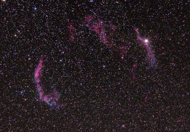 2-199). Er enthält auch mehrere offene Sternhaufen. Mit meinem 10"-Teleskop kann ich jeweils nur Teile des Nebels