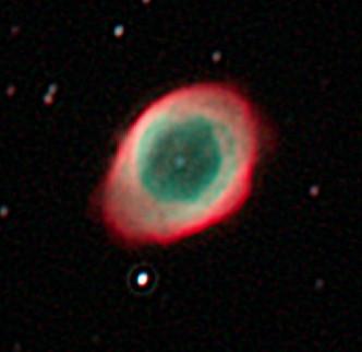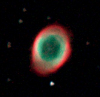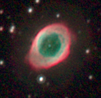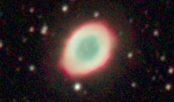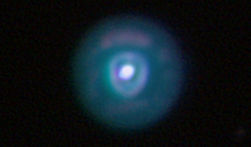 Korken ist schon in kleineren Teleskopen erkennbar. Die äußeren Bereiche