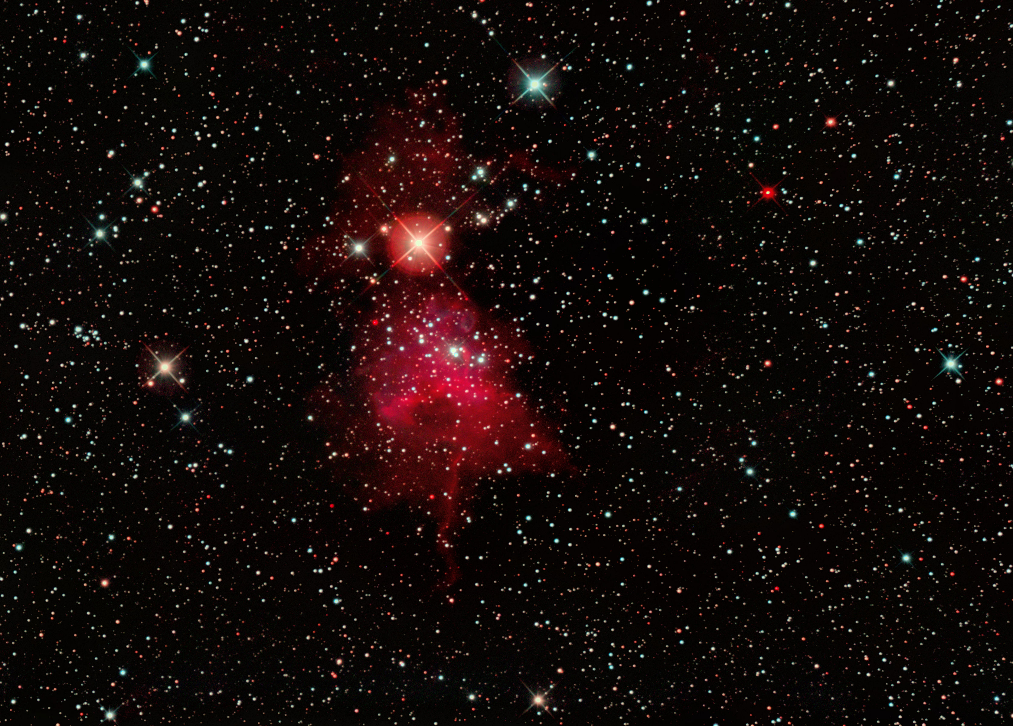 2254 ist ein offener Sternhaufen, eingebettet in eine ausgedehntere HII-Region im Sternbild